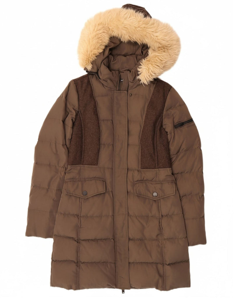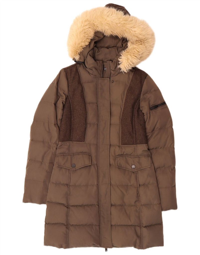 7 FOR ALL MANKIND Womens Padded Coat UK 6 XS Brown Colourblock Winter
