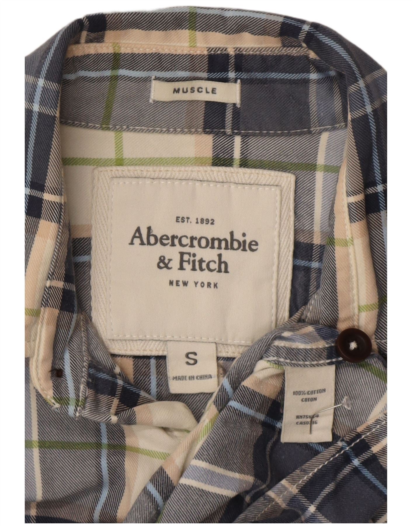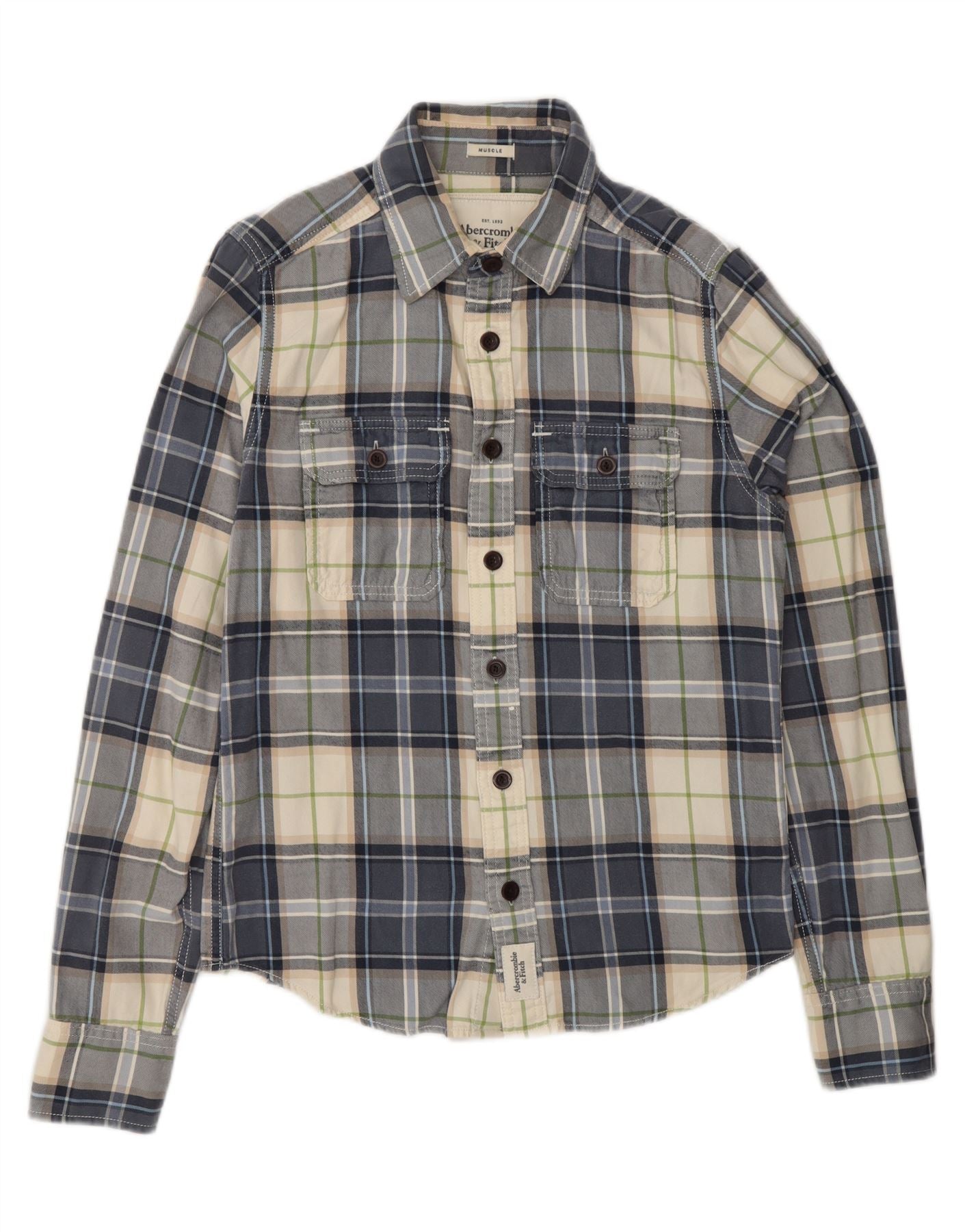 ABERCROMBIE & FITCH Cămașă de flanel pentru bărbați, din bumbac cu carouri albastre mici