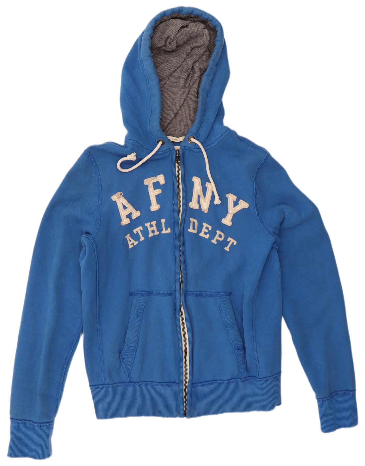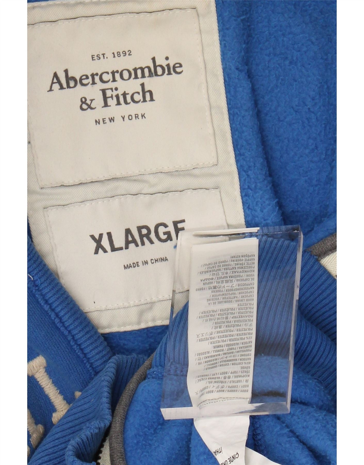ABERCROMBIE & FITCH Pulover cu glugă cu fermoar cu grafic muscular pentru bărbați, bumbac XL, albastru