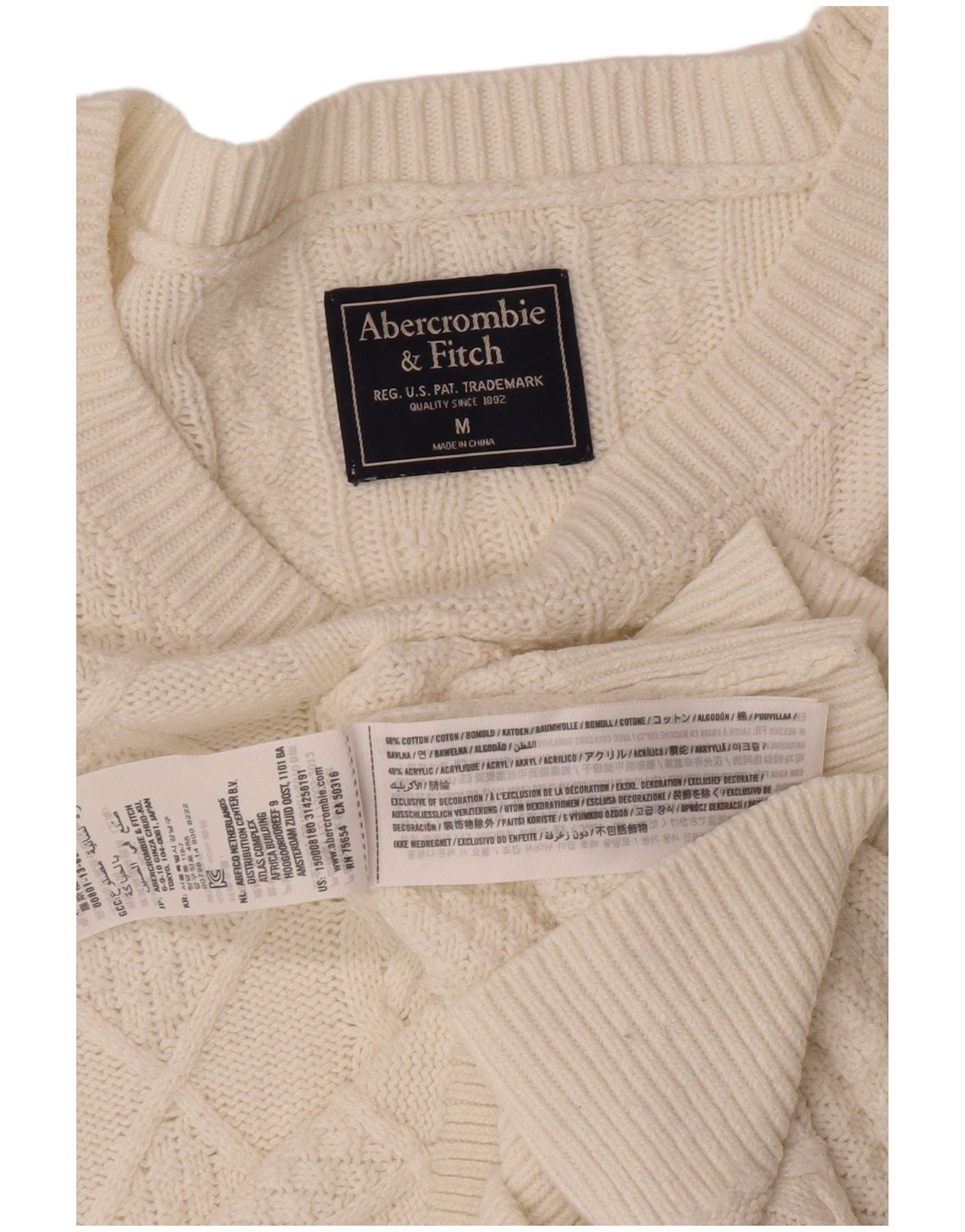 ABERCROMBIE & FITCH Pulover pentru femei cu gâtul turnat UK 14 Medium White