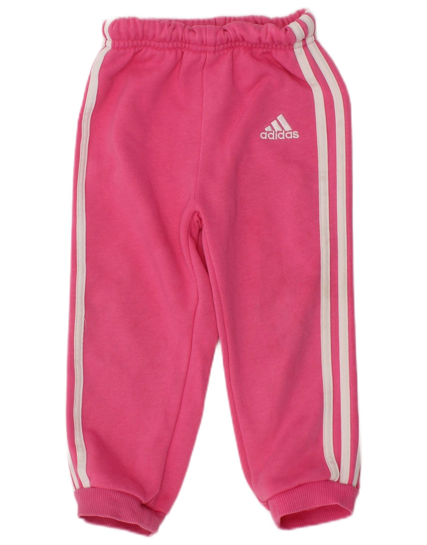 ADIDAS Baby Girls Joggers Tracksuit Trousers 12-18 Months Pink Cotton