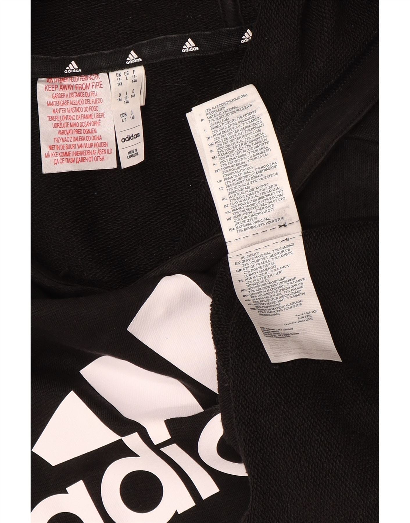 Pulover ADIDAS pentru băieți, cu grafică, 13-14 ani, bumbac negru