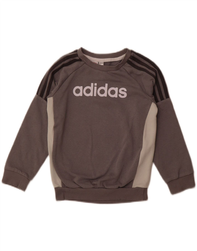 ADIDAS Boys Graphic Sweatshirt Jumper 6-7 Years Grey Colourblock Cotton