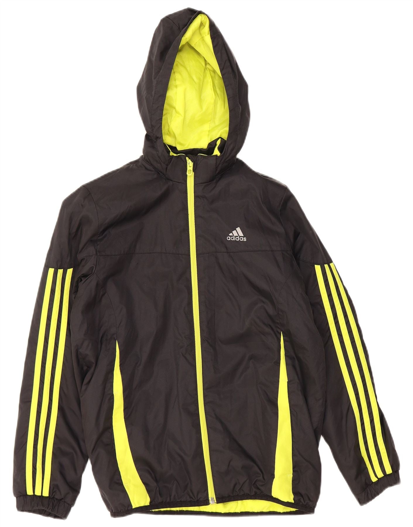 Jachetă de vânt cu glugă ADIDAS pentru băieți 11-12 ani, negru, color block