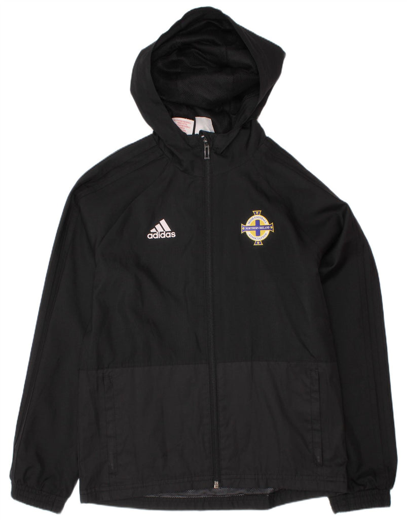 Jachetă de ploaie cu glugă ADIDAS pentru băieți, fotbal irlandez, 9-10 ani, poliester negru