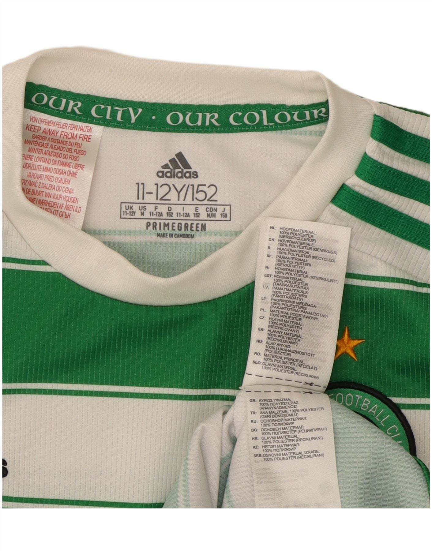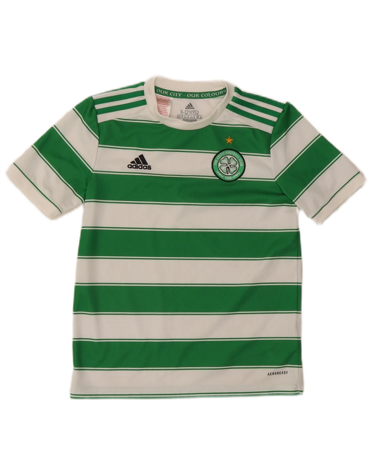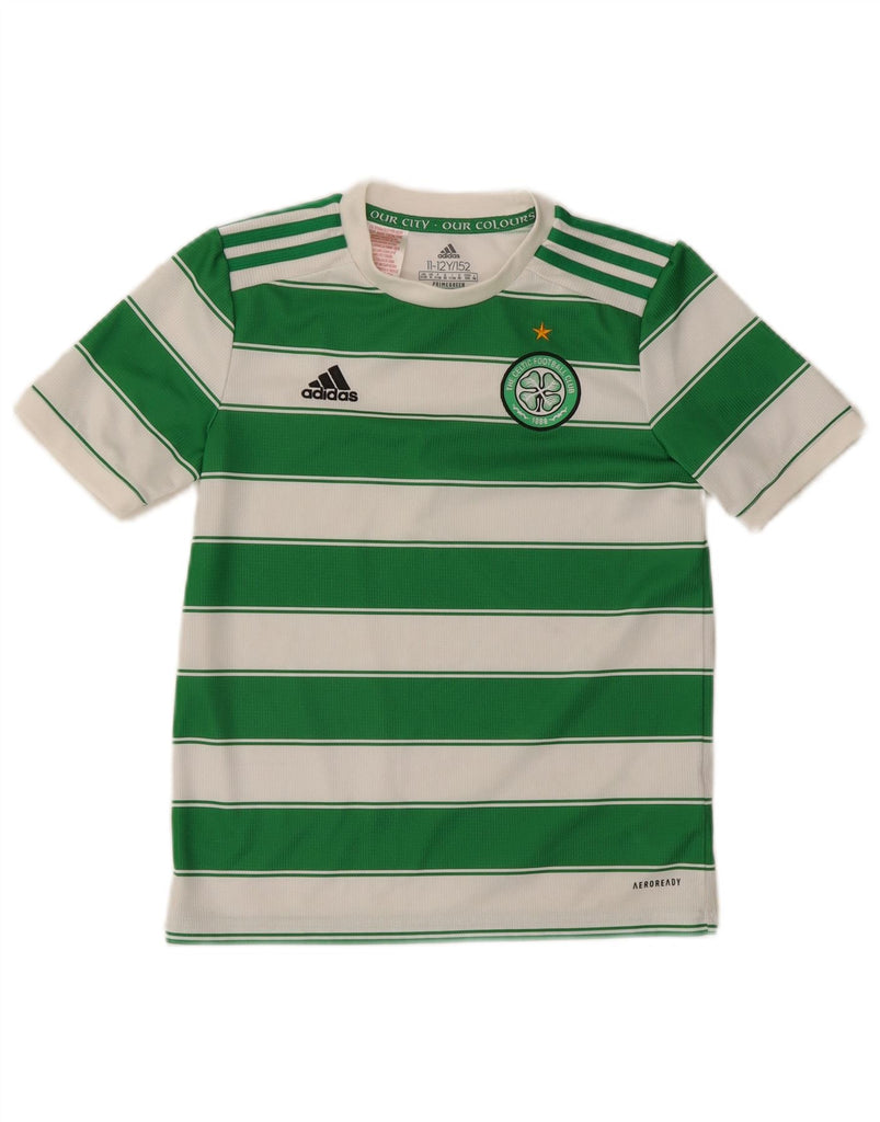 ADIDAS Boys The Celtic Football Club T-Shirt Top 11-12 Years Green Striped
