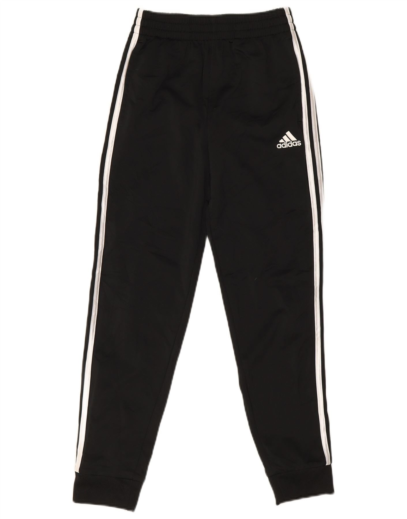 - Descriere AI: Acesti pantaloni de jogging Adidas pentru baieti sunt confectionati din material neted 100% poliester. Au o potrivire atletică cu o talie elastică confortabilă. Picioarele sunt încătușate la gleznă pentru un finisaj îngrijit. 3 dungi albe clasice se desfășoară pe fiecare parte, completând designul negru. Pe picior este plasat un logo subtil Adidas. Buzunarele practice adaugă funcționalitate.