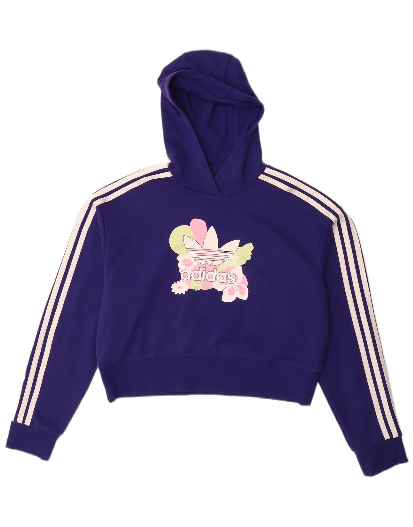 Pulover pentru fete ADIDAS Crop Graphic Hoodie 13-14 ani, purpuriu, bumbac floral