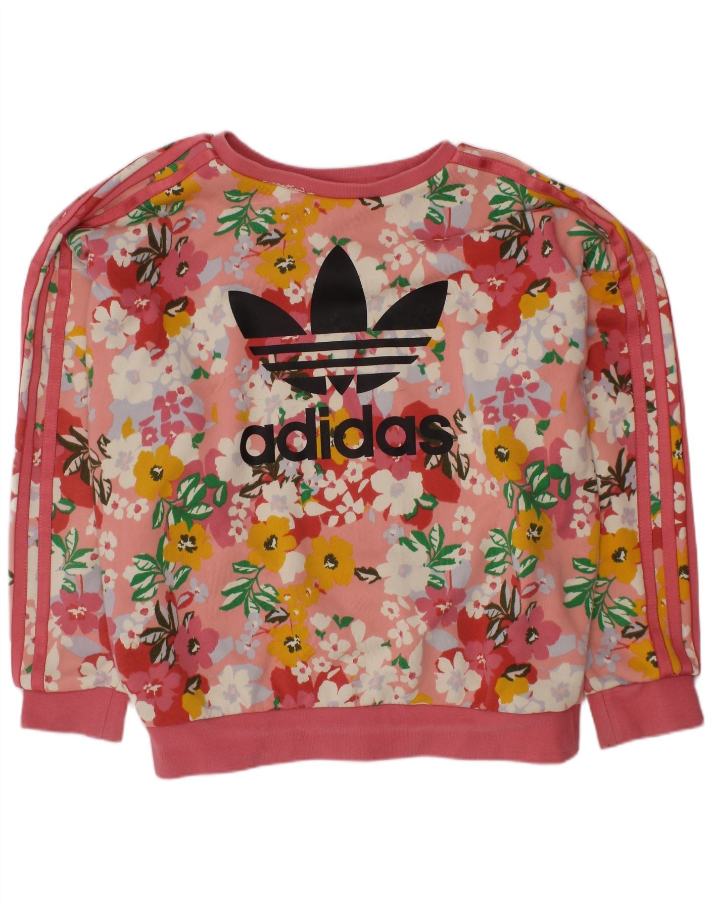 Pulover ADIDAS pentru fete cu grafic 9-10 ani, bumbac floral roz