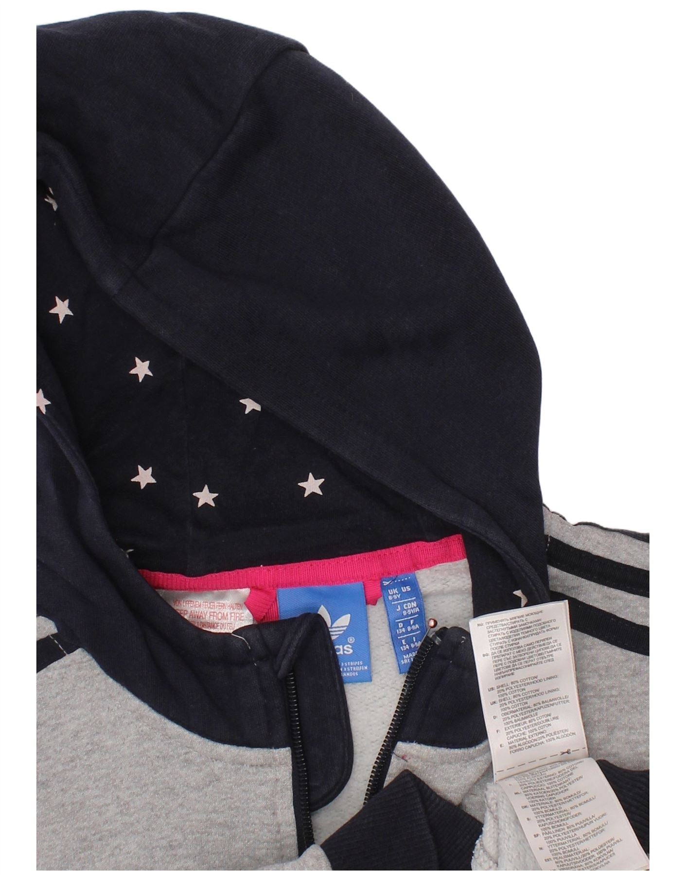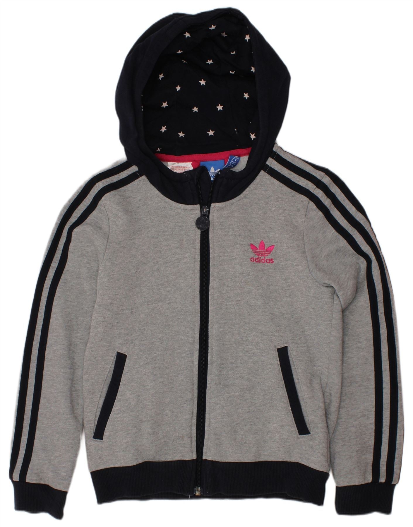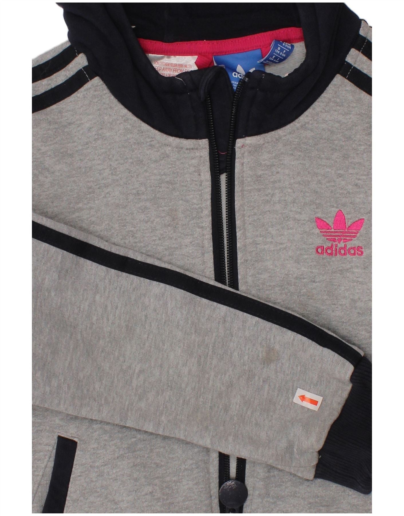 Pulover ADIDAS pentru fete, cu fermoar, 8-9 ani, bumbac color bloc, gri