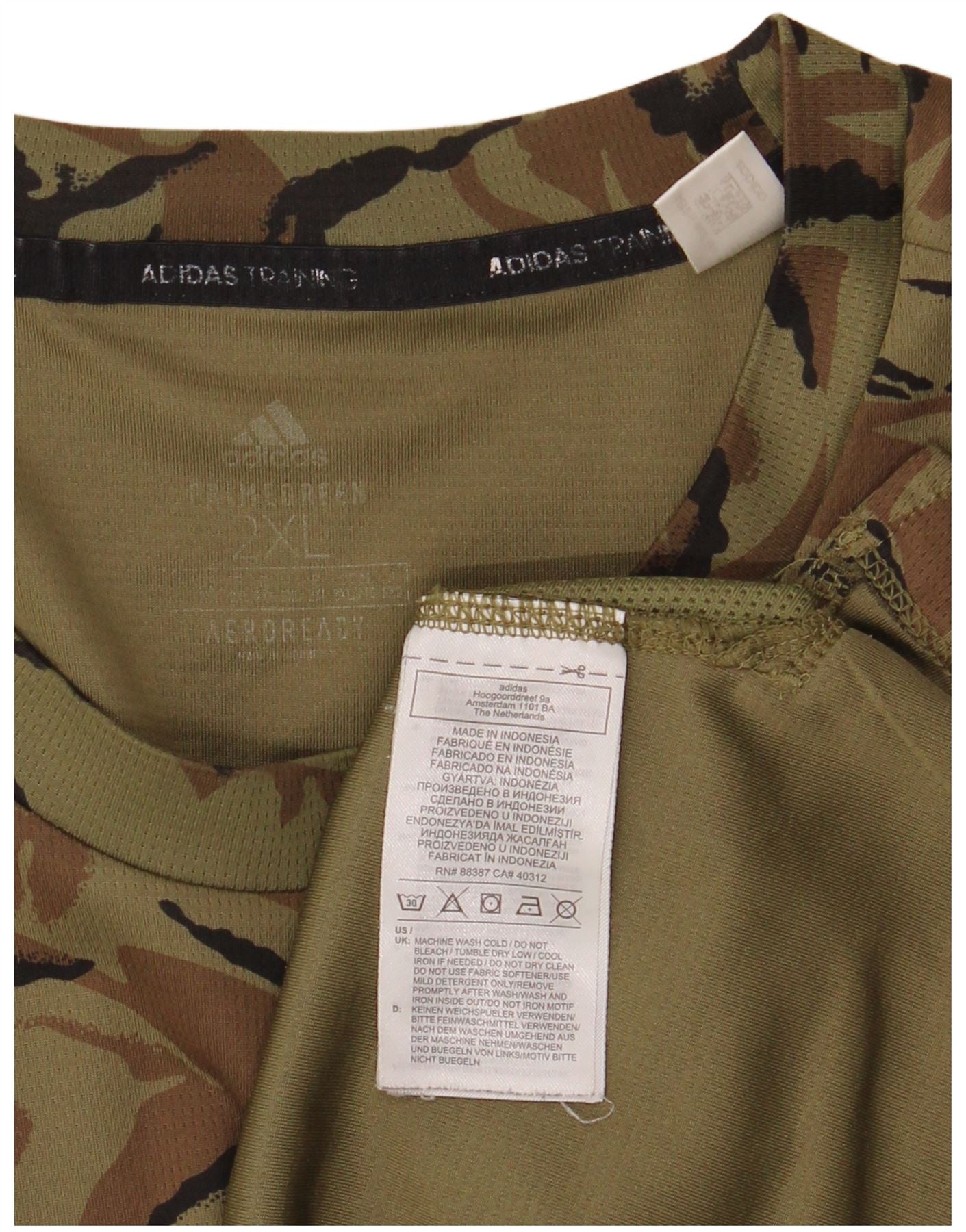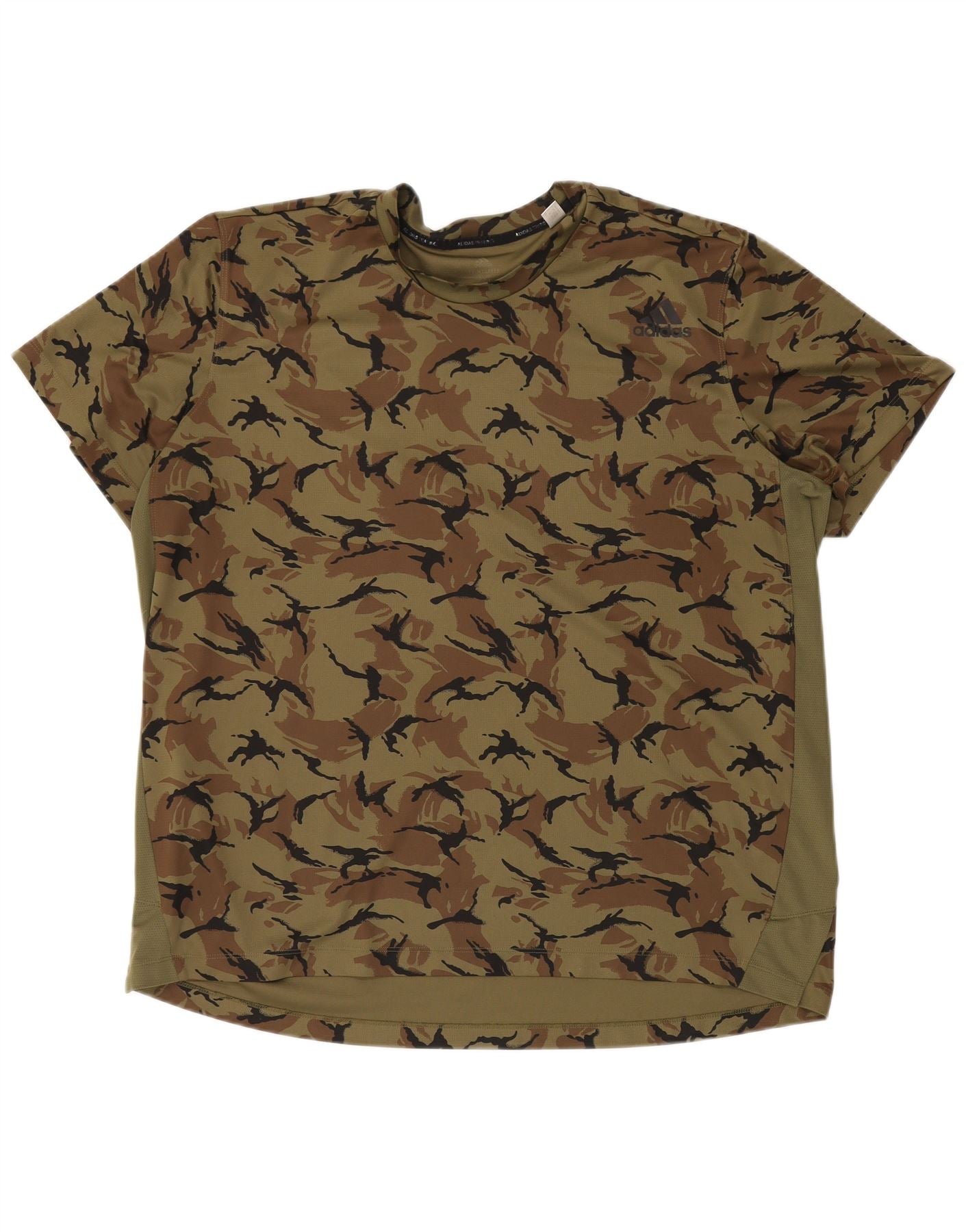 ADIDAS Mens Aeroready T-Shirt Top 2XL Khaki Camouflage Polyester