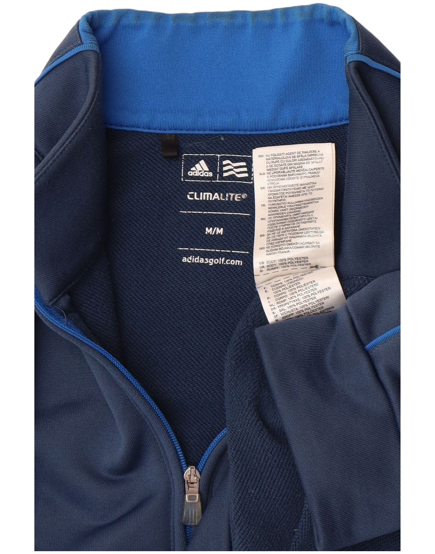 Adidas Climalite Mens Zip Neck Pullover Trening Top Top Medium Blue Poliester