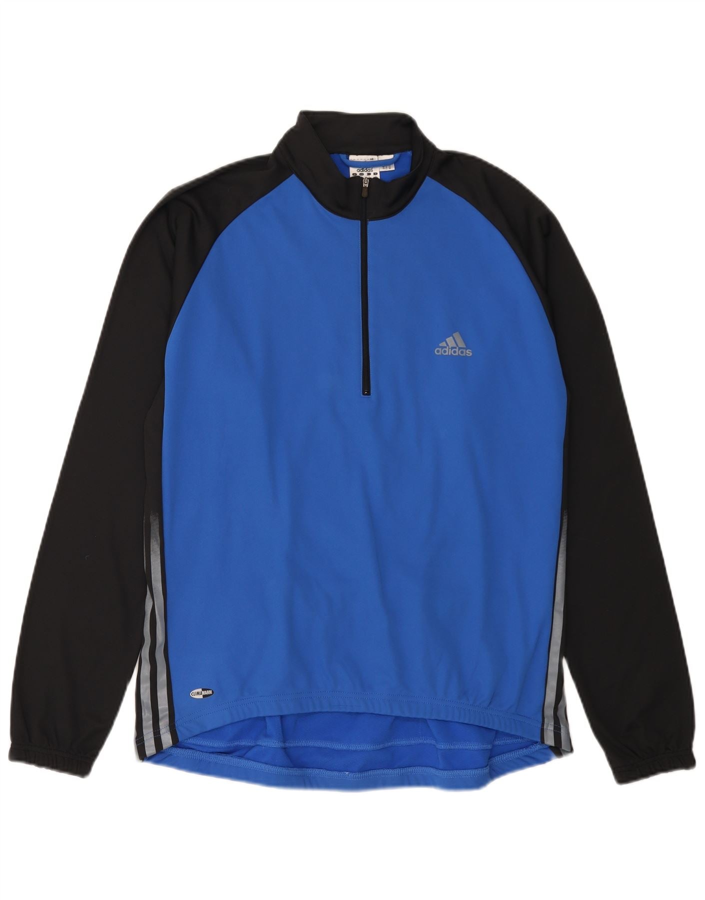 ADIDAS Mens Climawarm Pullover Tracksuit Top Large Blue Colourblock