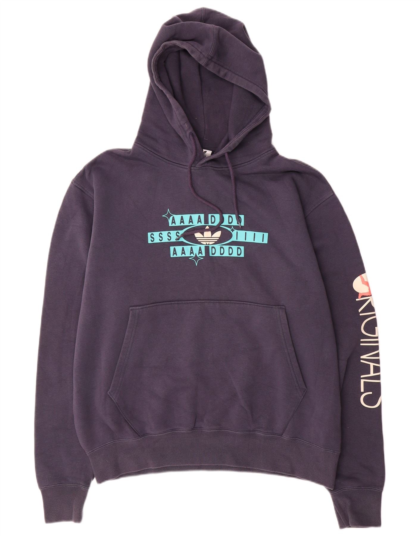 Pulover pentru bărbați ADIDAS cu capota cu grafică, mare, albastru, bumbac