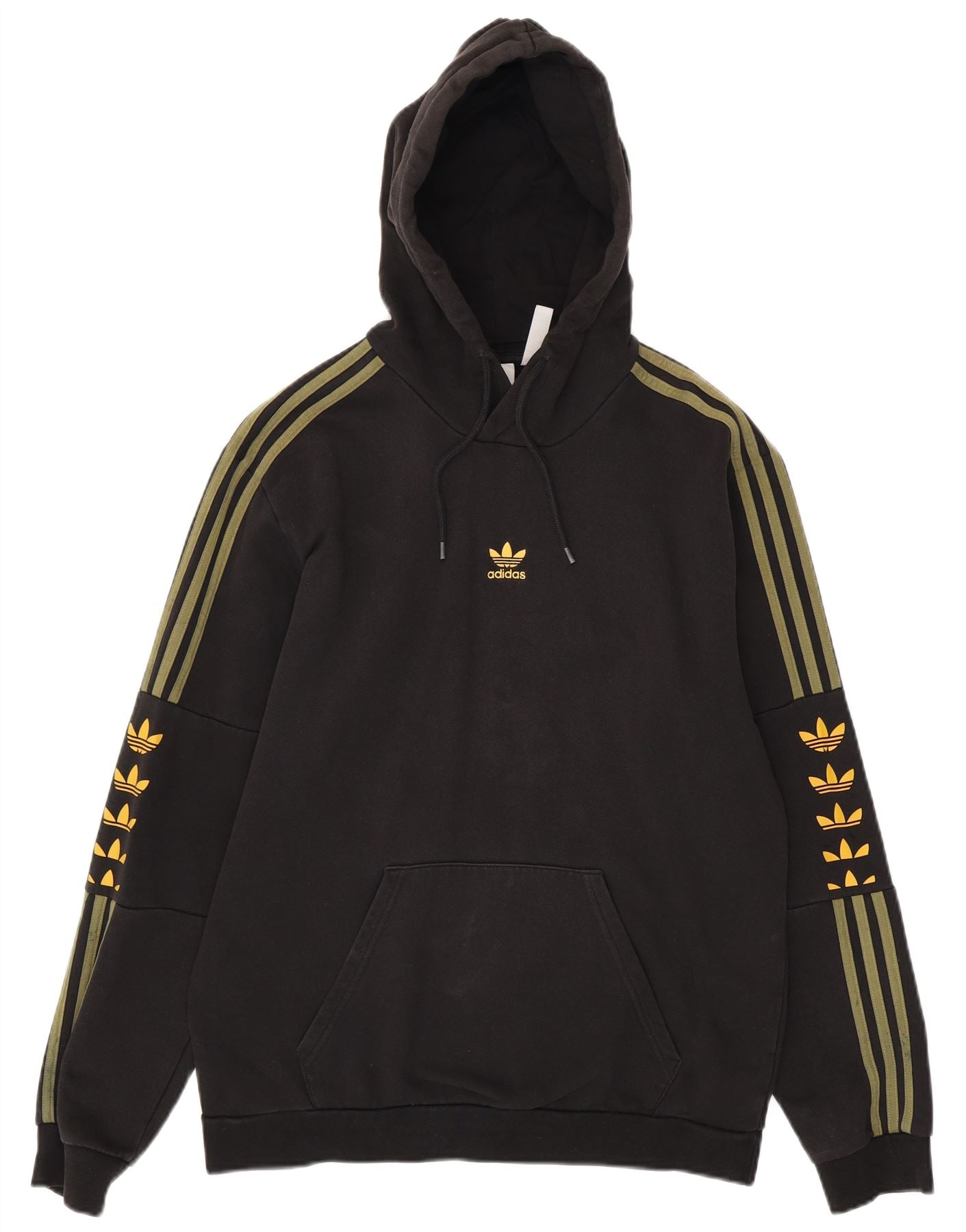Pulover ADIDAS pentru bărbați cu glugă grafică, bumbac mediu negru