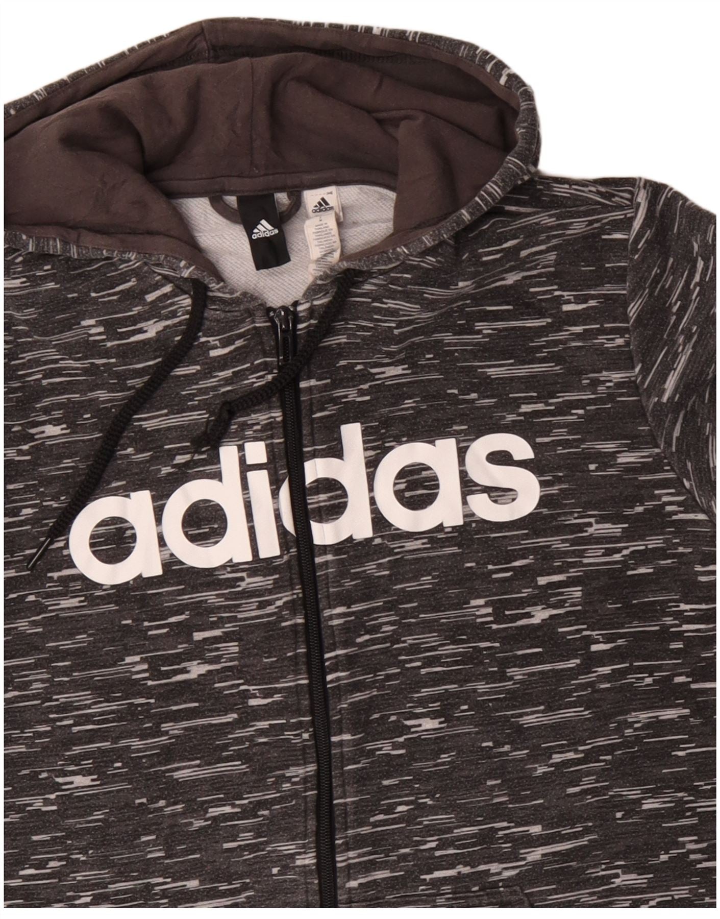 - Descriere AI: Acest pulover Adidas pentru femei cu fermoar este realizat dintr-un tricot confortabil din amestec de bumbac. Modelul cu pete multicolore prezintă tonuri de gri, negru și alb. Are inchidere complet cu fermoar si gluga practica. Mânecile lungi și o potrivire obișnuită asigură confortul de zi cu zi. Partea din față afișează cu mândrie un logo Adidas îndrăzneț. Această piesă versatilă include buzunare convenabile, perfecte pentru ținute casual.