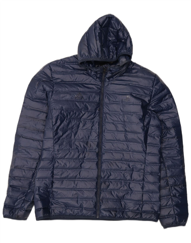 ADIDAS Mens Hooded Padded Jacket UK 40 Large Navy Blue Polyester