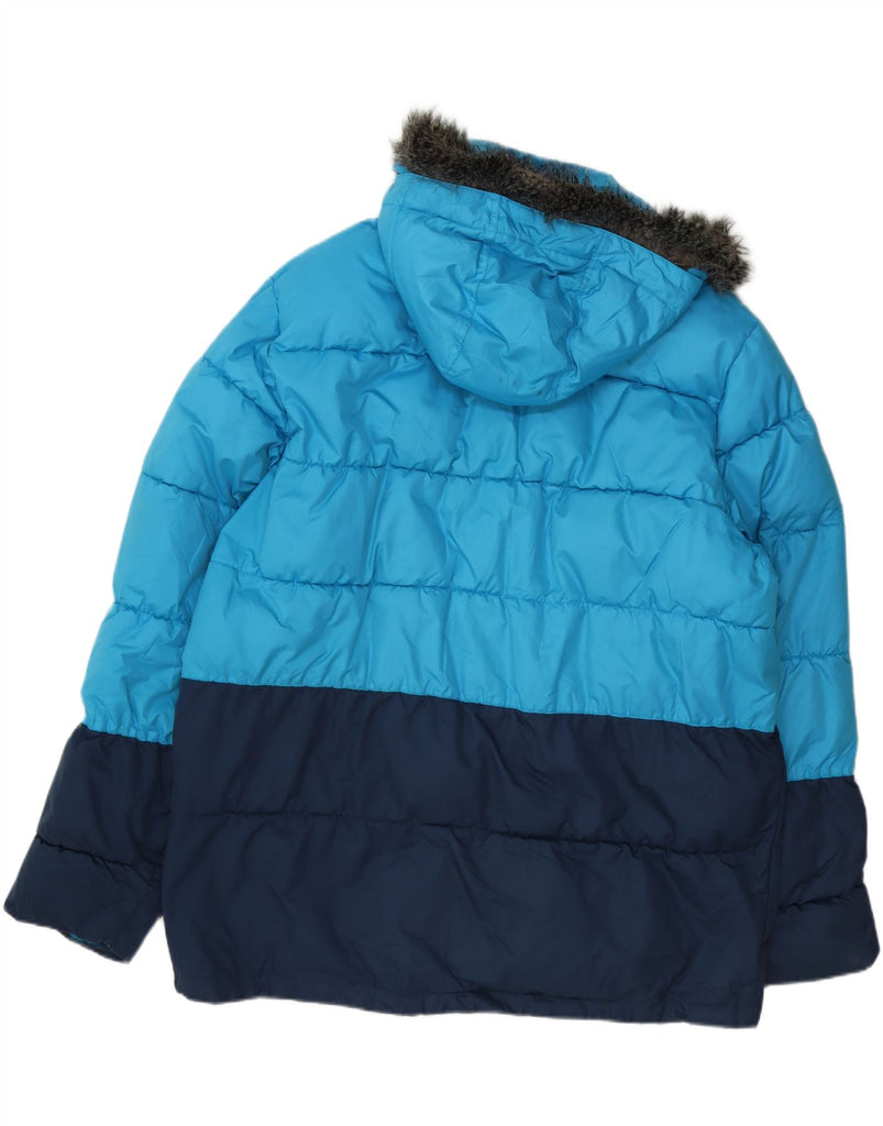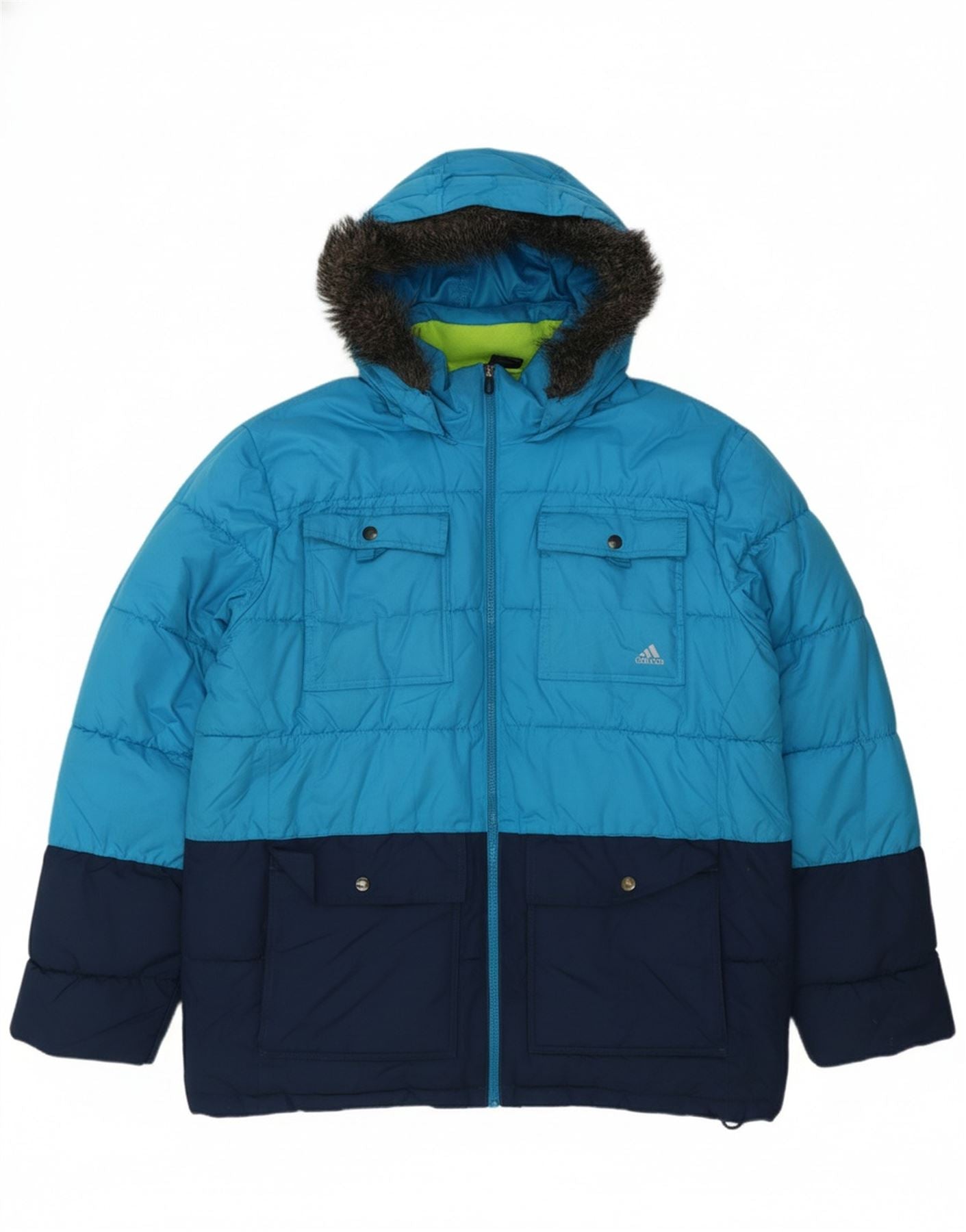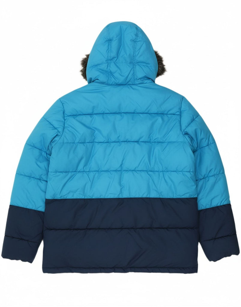 ADIDAS Mens Hooded Padded Jacket UK 44 2XL Blue Colourblock Polyester