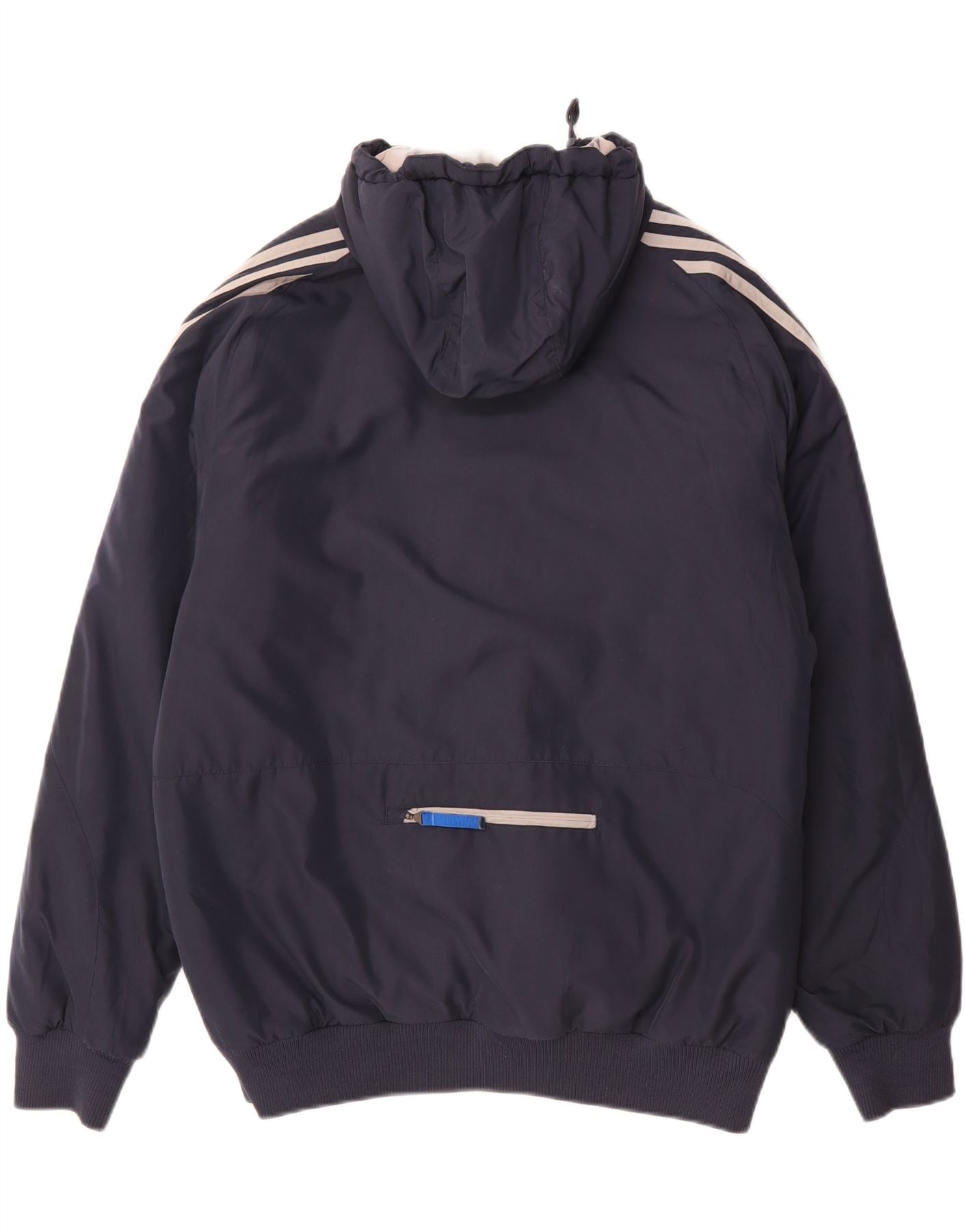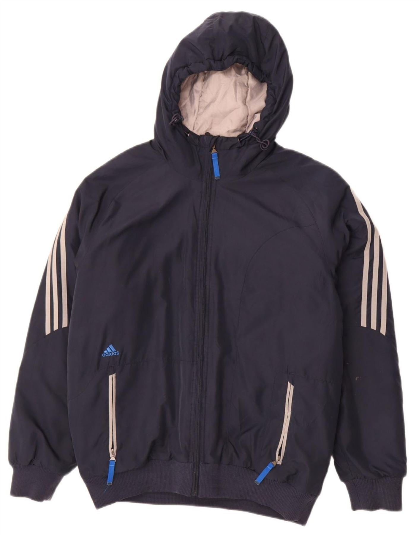 ADIDAS Mens Hooded Windbreaker Jacket UK 38 Medium Navy Blue Polyester