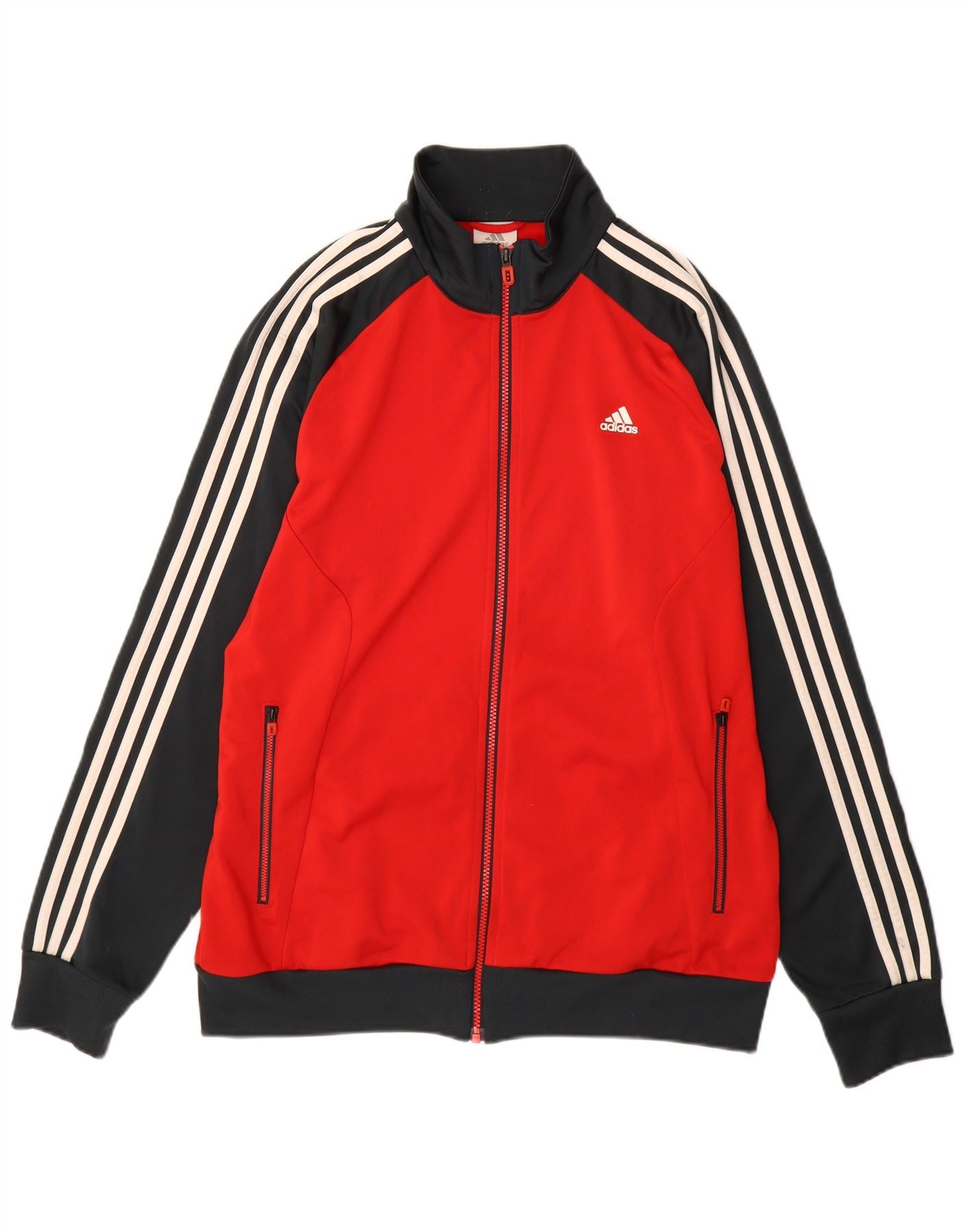 ADIDAS Mens Tracksuit Top Jacket UK 44/46 Large Red Colourblock Polyester