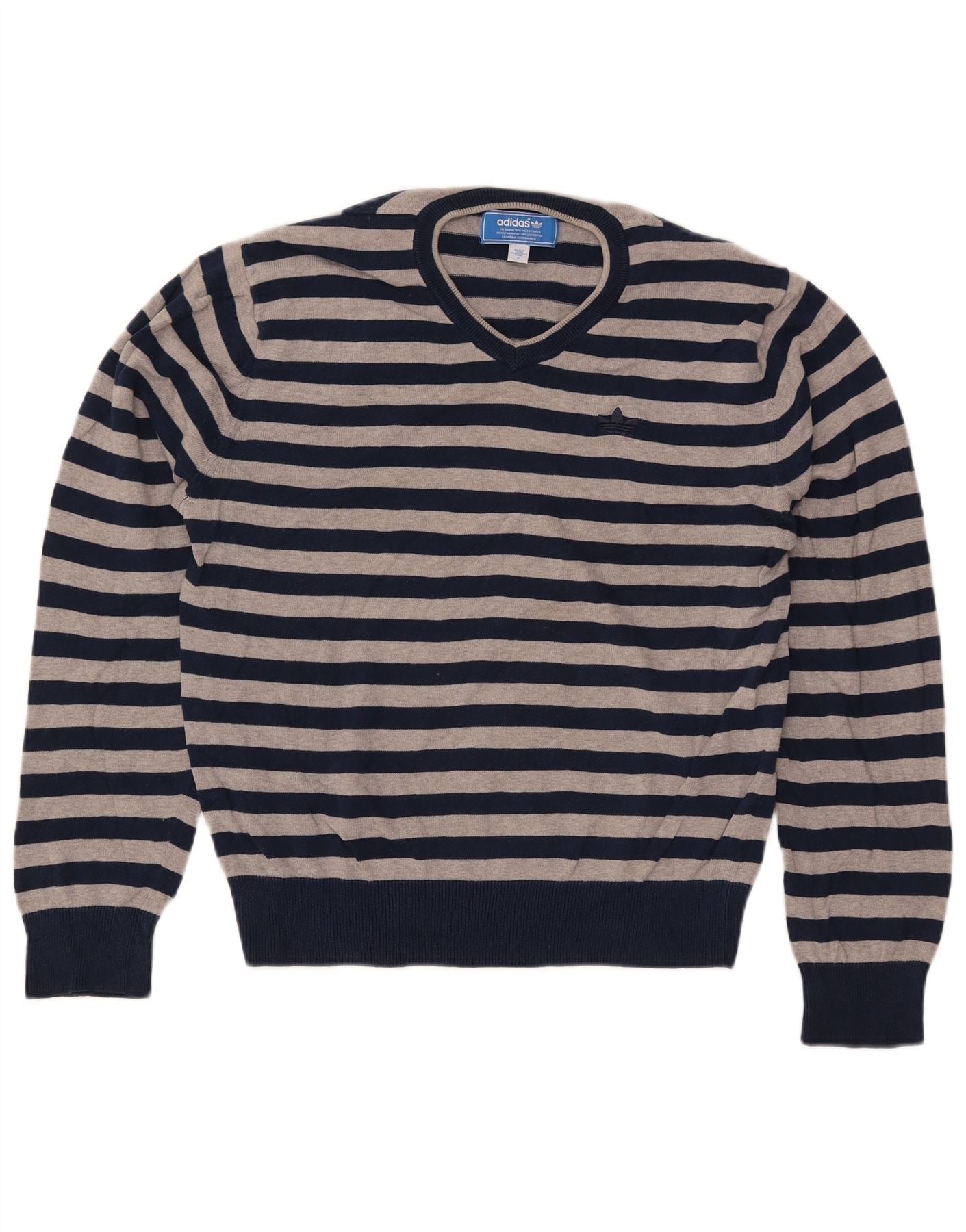 Pulover cu decolteu în V ADIDAS pentru bărbați, bumbac cu dungi, albastru bleumarin