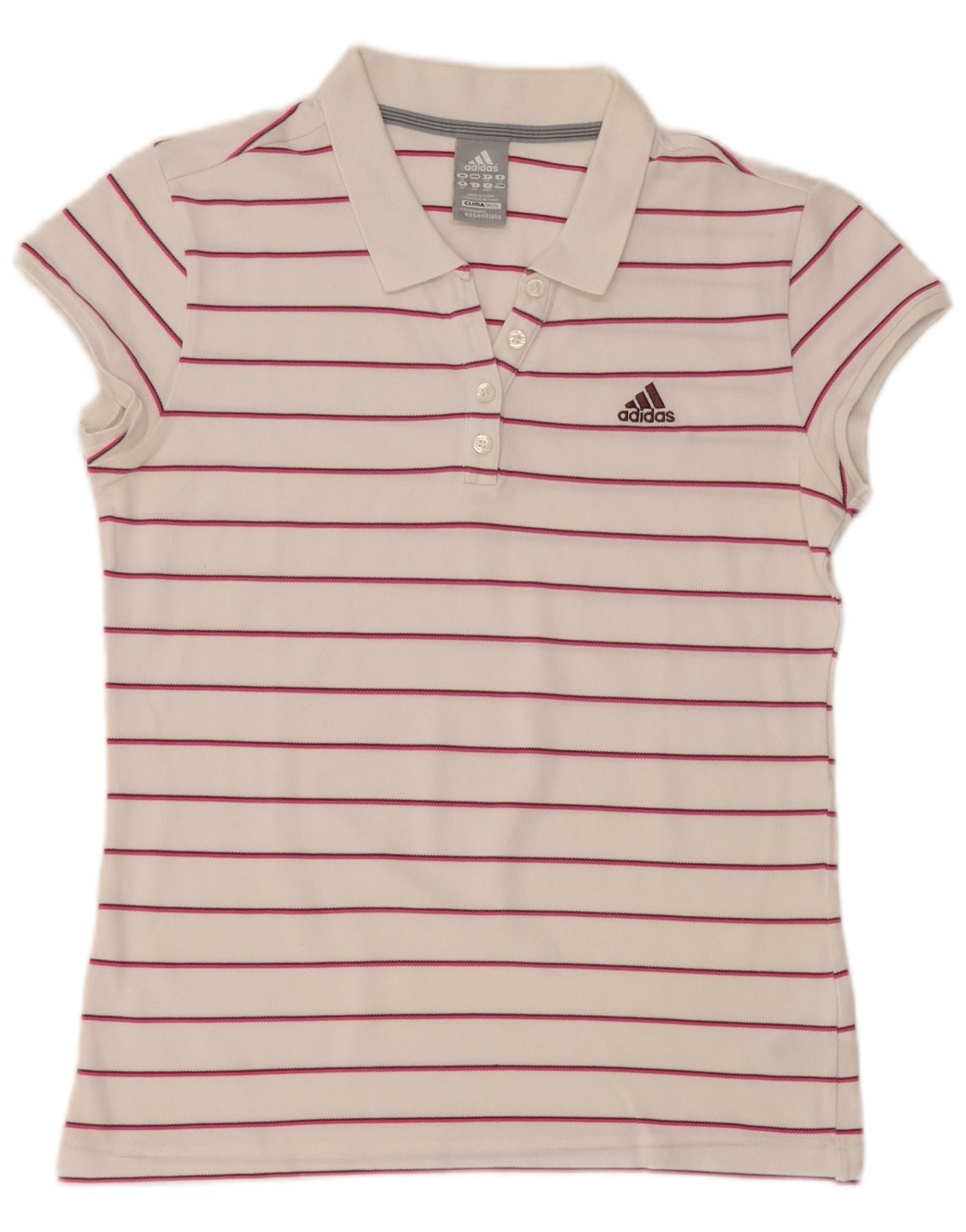 Tricou polo ADIDAS Clima 365 pentru femei UK 16, bumbac mare cu dungi albe