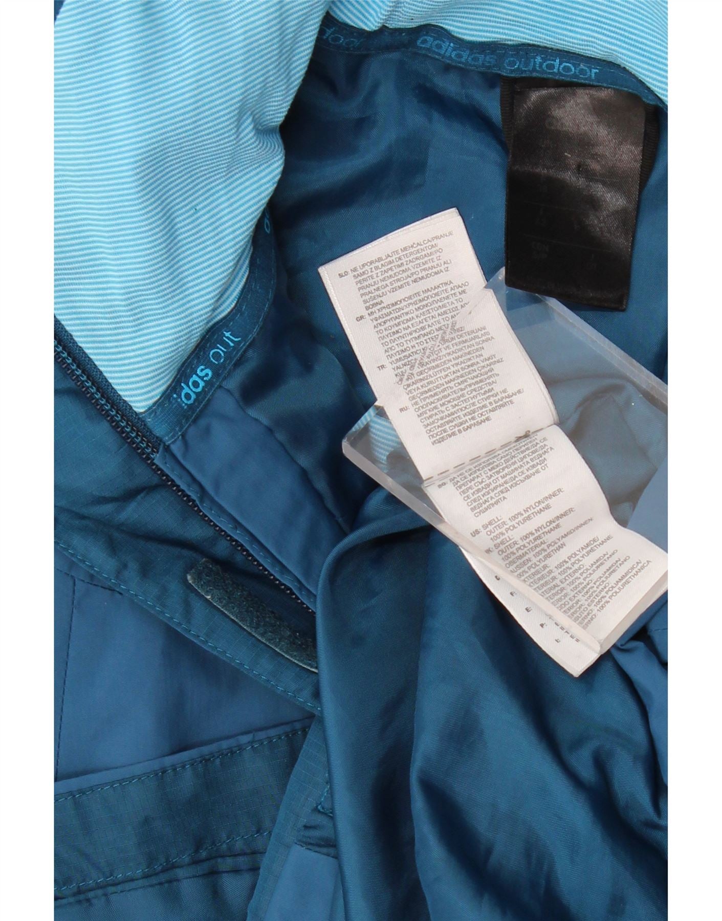 ADIDAS pentru femei Clima Proof jachetă de vânt cu glugă, UK 14, albastru mediu