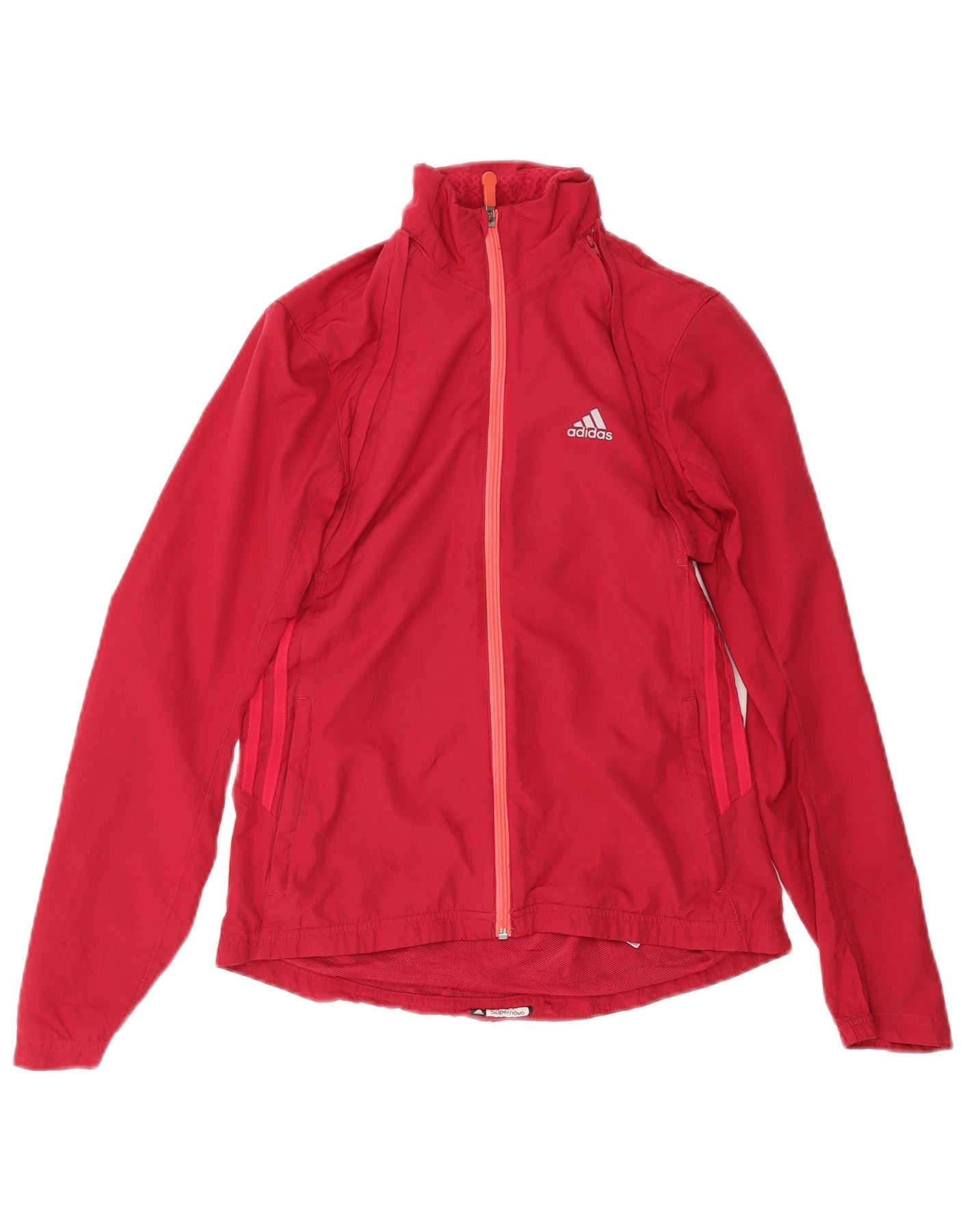 ADIDAS Womens Clima Proof Tracksuit Top Jacket UK 8 Small Red Polyester