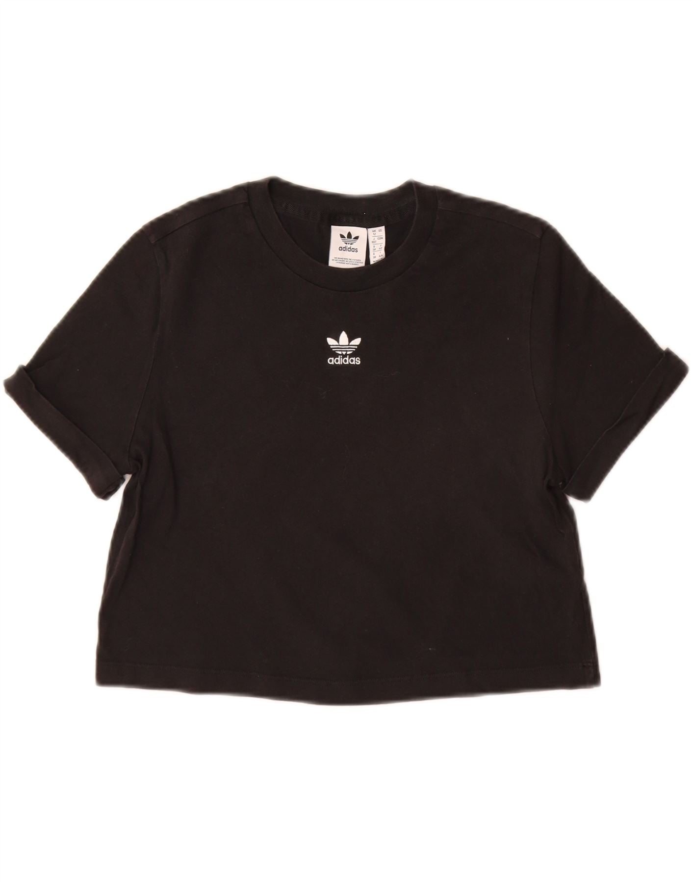 Tricou crop ADIDAS pentru femei, UK 12, bumbac mediu negru