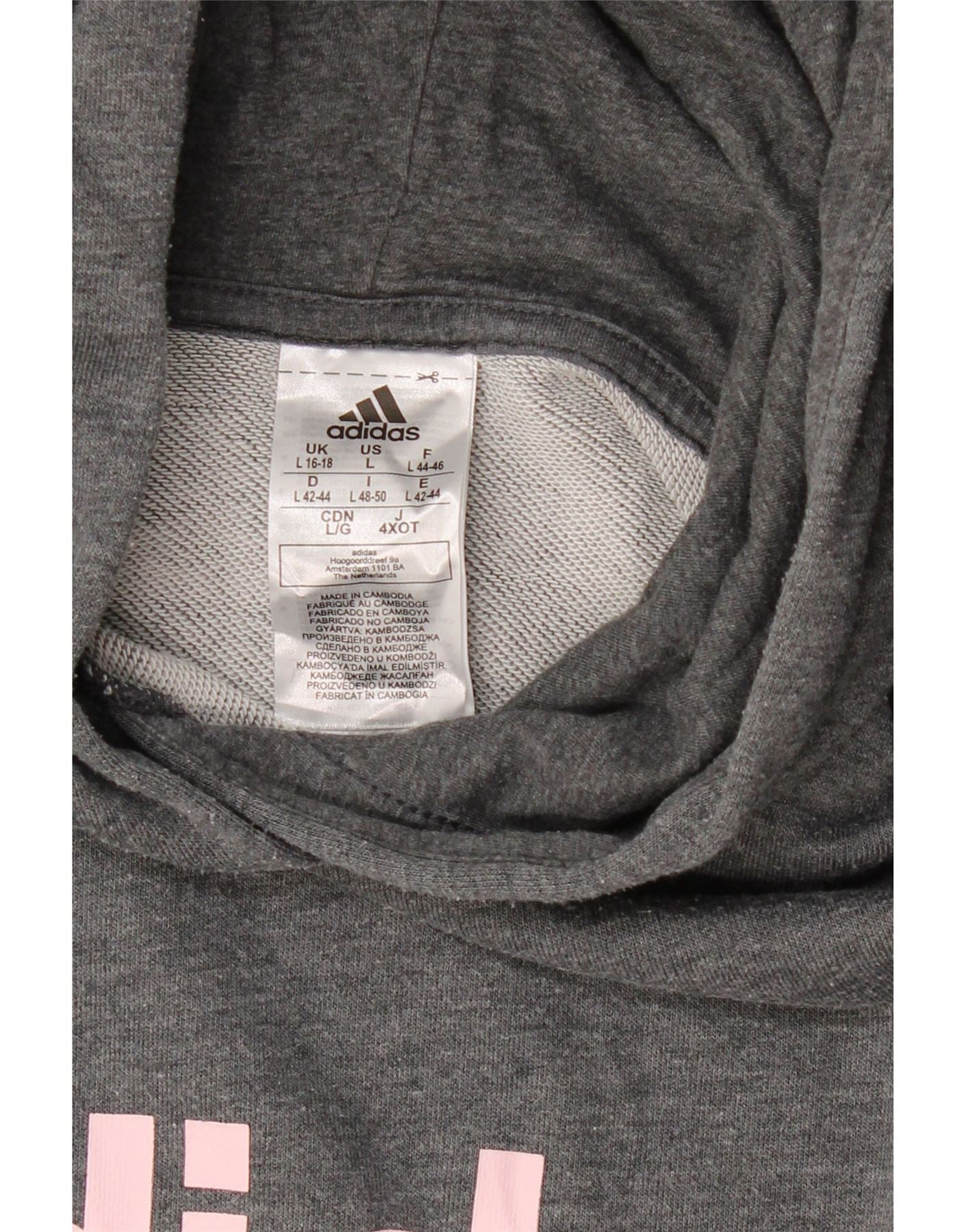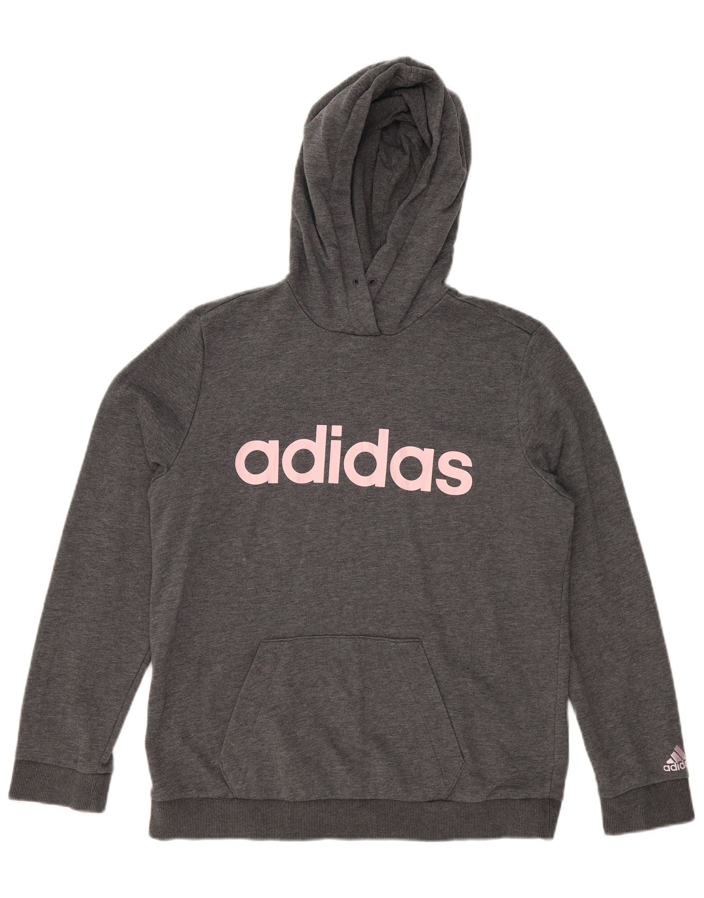 Pulover ADIDAS pentru damă cu grafică cu glugă, UK 16/18, mare, gri, poliester