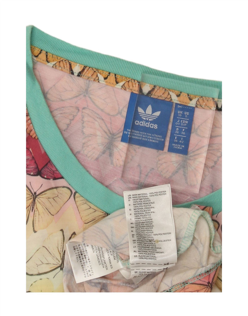 ADIDAS Womens Graphic T-Shirt Top UK 10 Small Multicoloured Butterfly