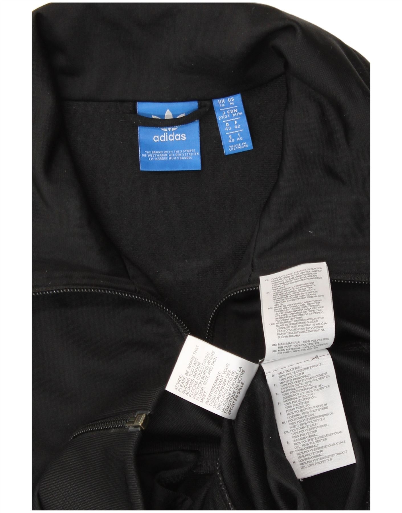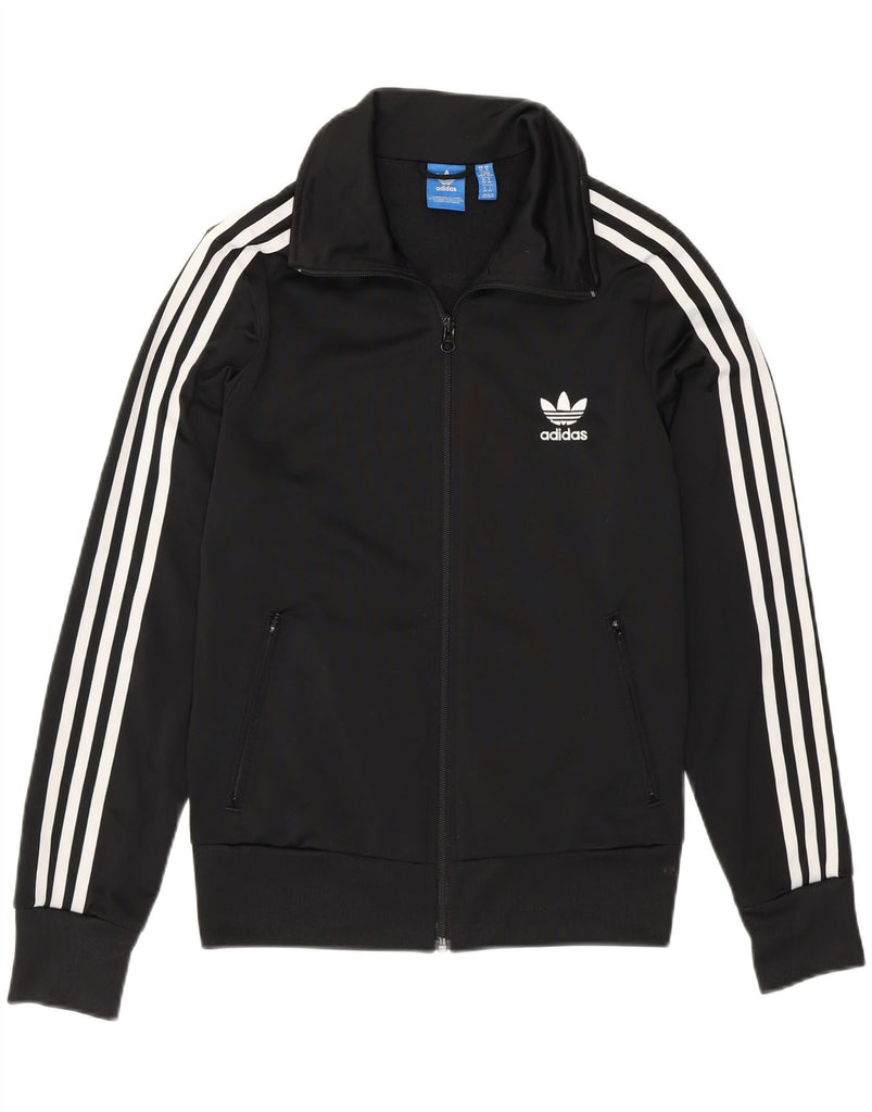 ADIDAS Womens Graphic Tracksuit Top Jacket UK 14 Medium Black Polyester