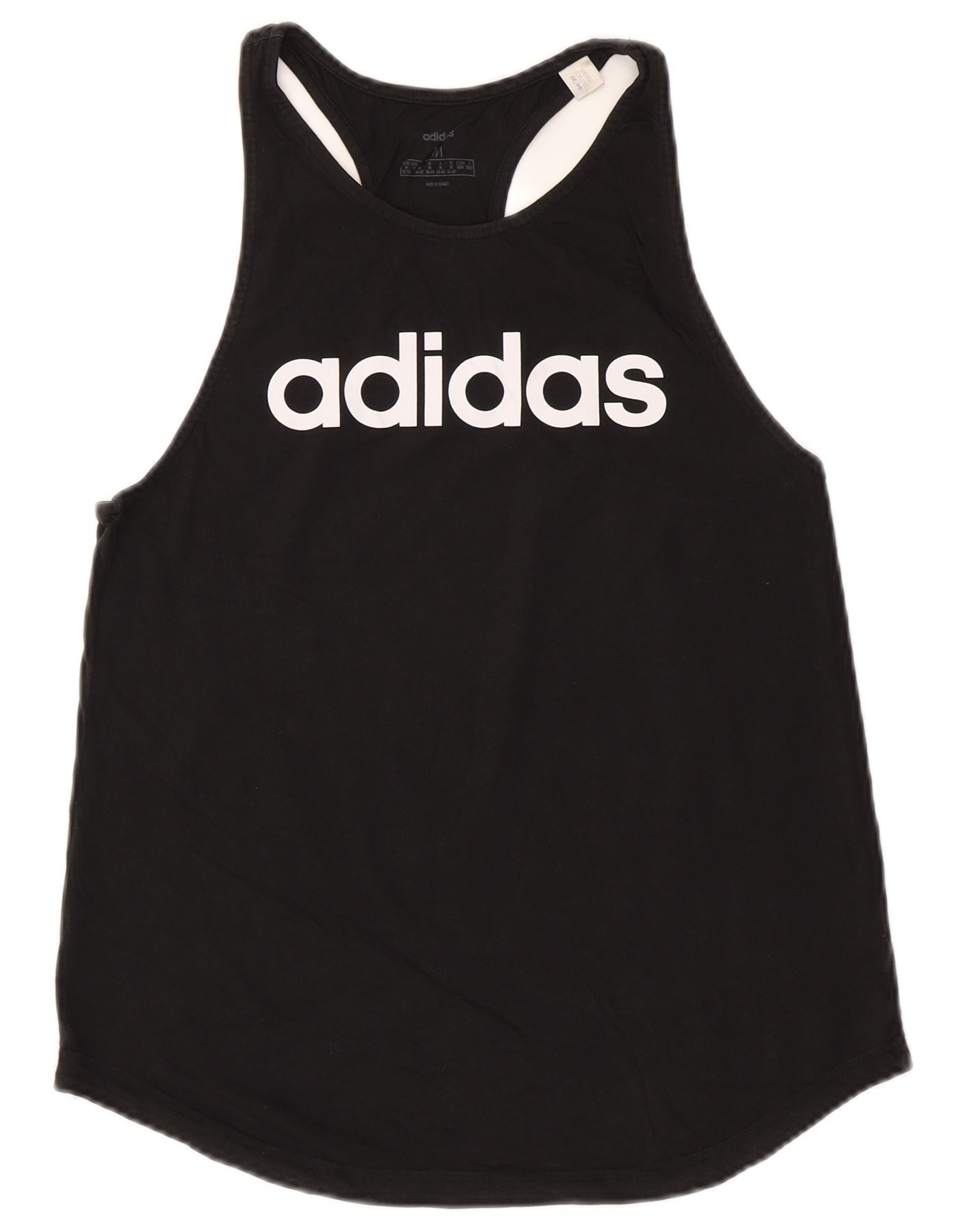 Top cu vestă grafică ADIDAS pentru femei UK 12/14, bumbac mediu negru