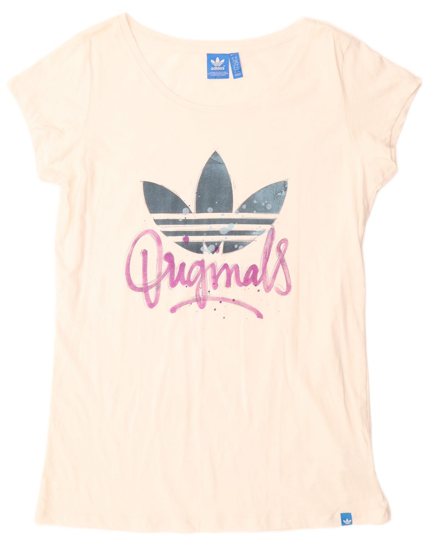 Tricou grafic ADIDAS pentru femei cu paragate Top UK 22 XL Bumbac alb
