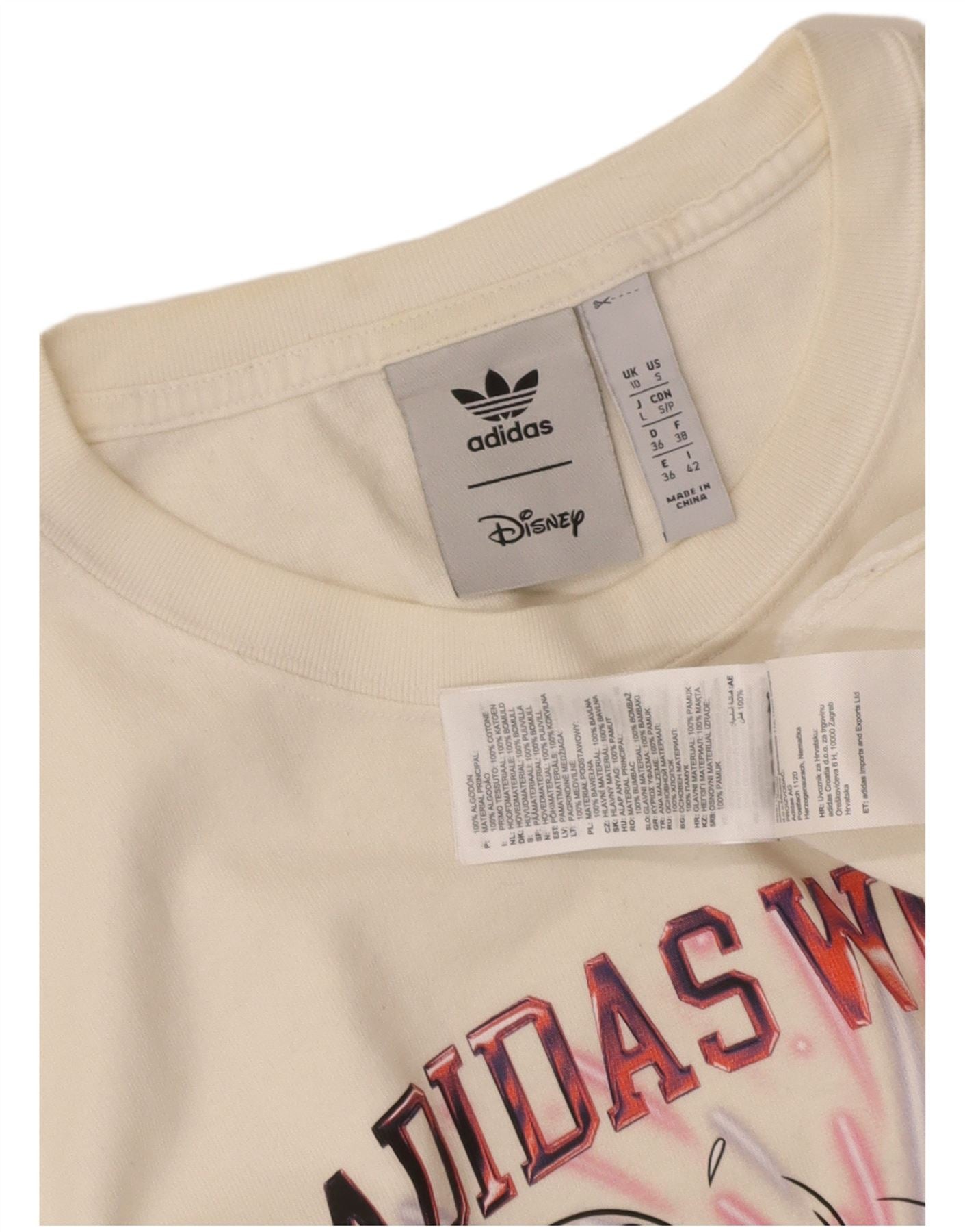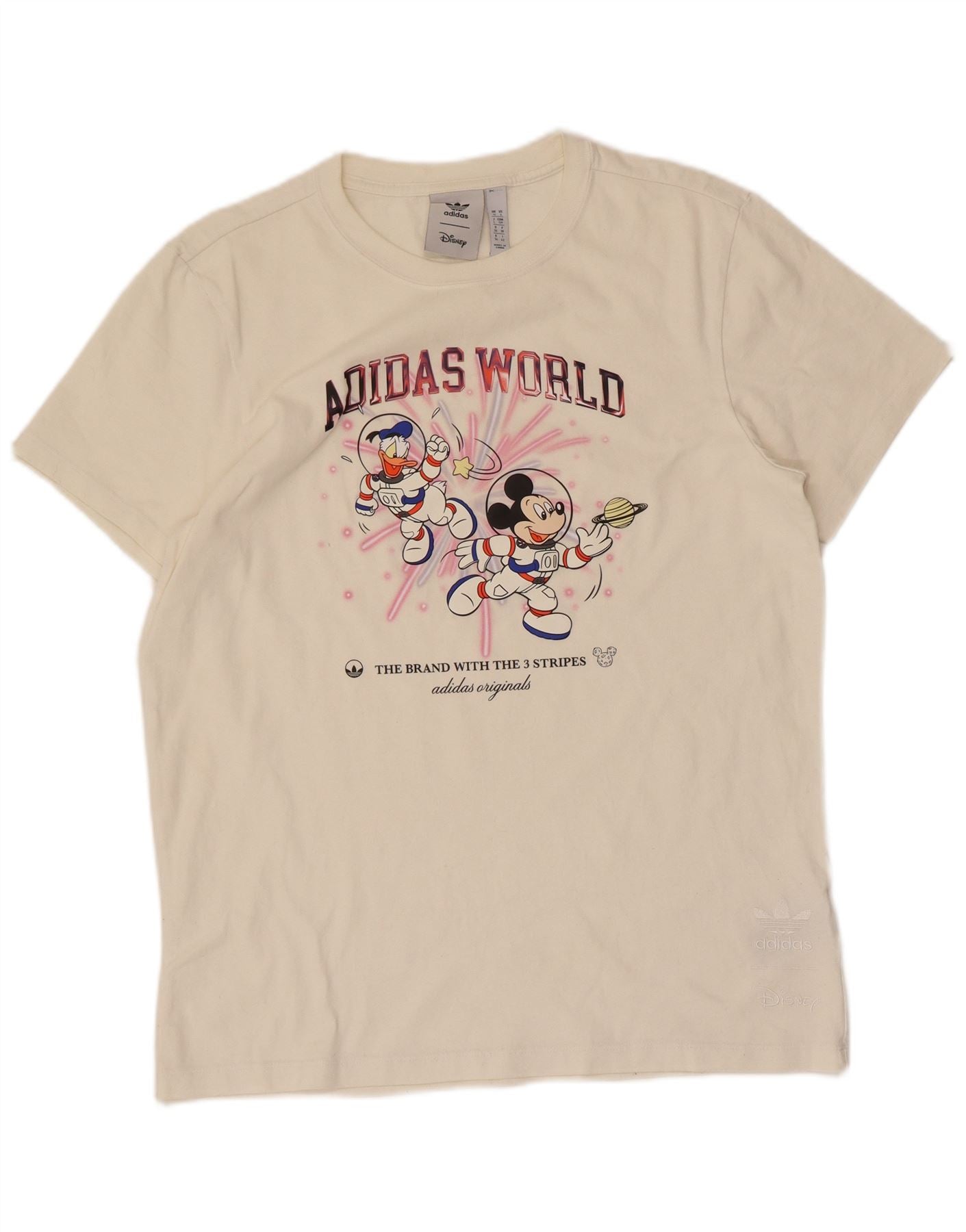 ADIDAS Womens Mickey Mouse Graphic T-Shirt Top UK 10 Small Off White
