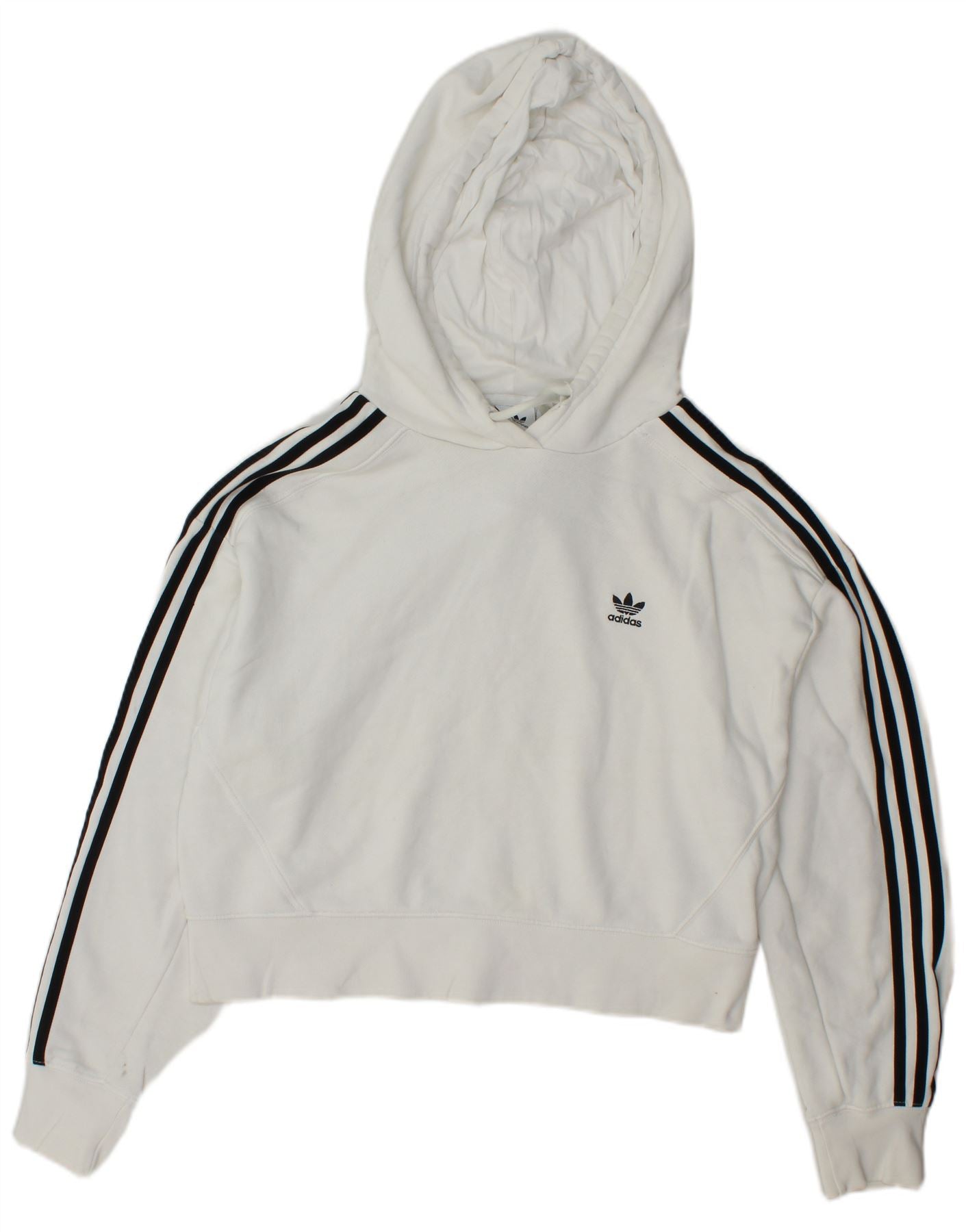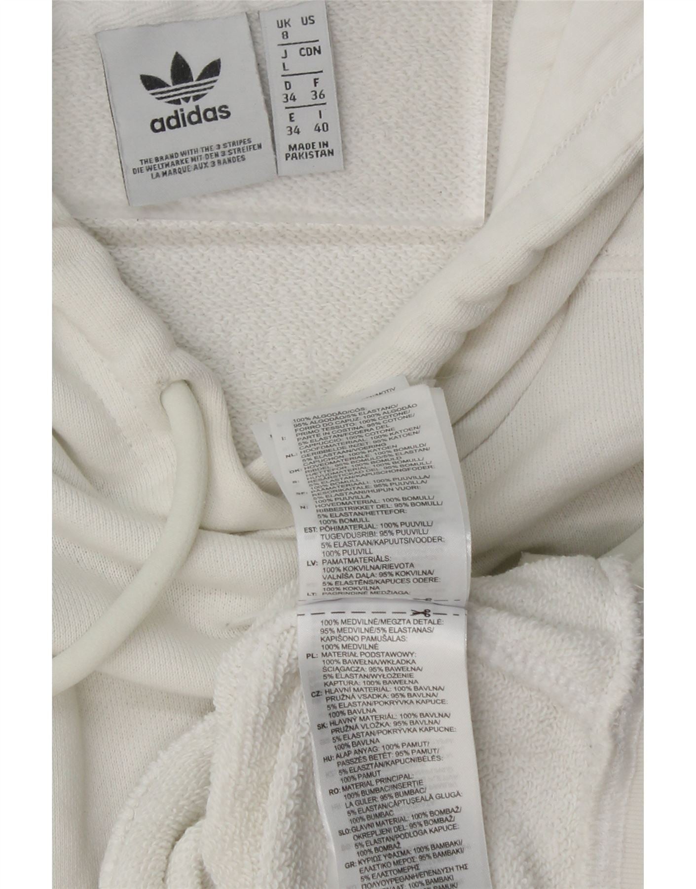 Pulover oversize crop hoodie ADIDAS pentru femei UK 8 mic bumbac alb