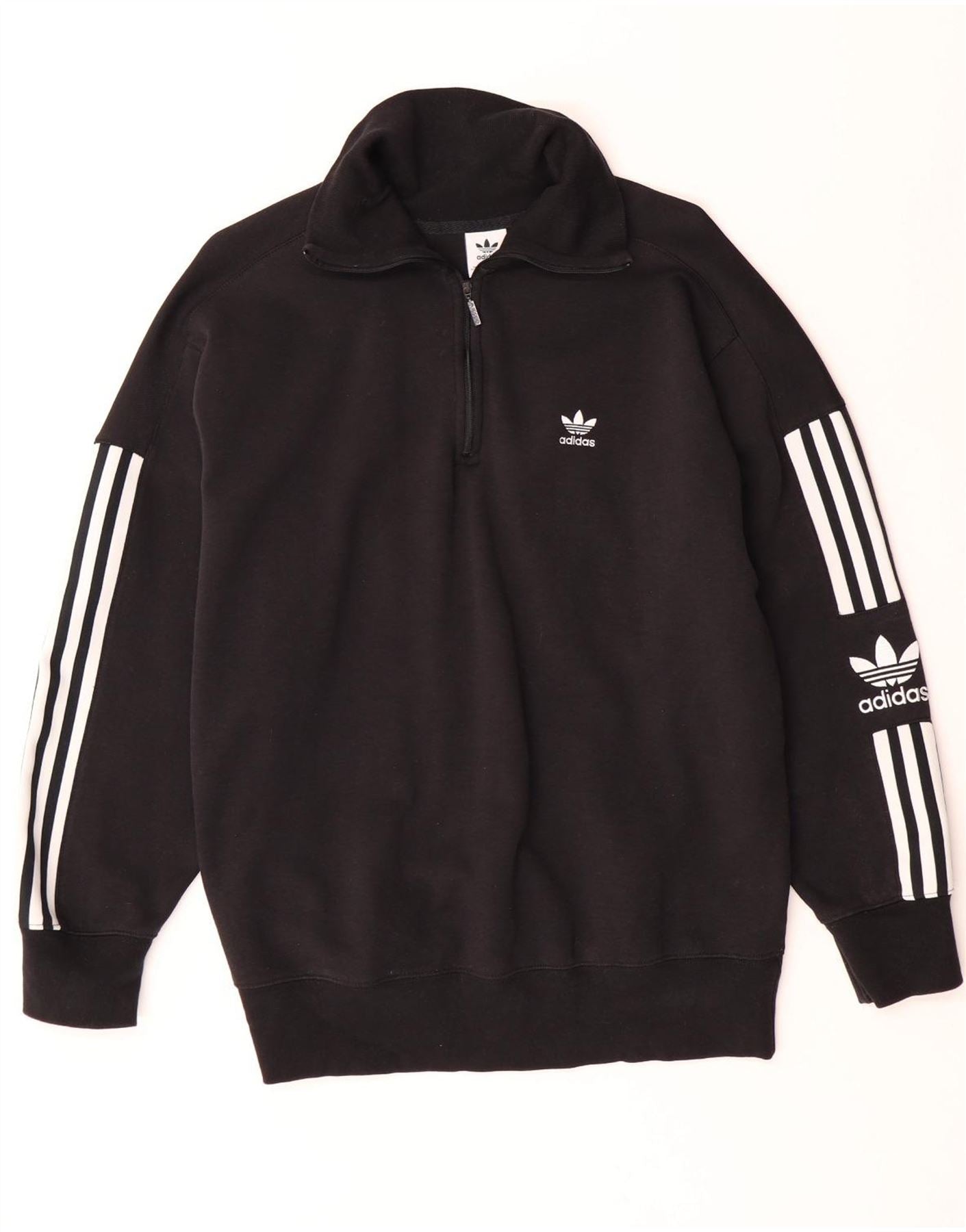 Pulover pentru femei ADIDAS, cu fermoar supradimensionat, cu gât, UK 16, mare, negru