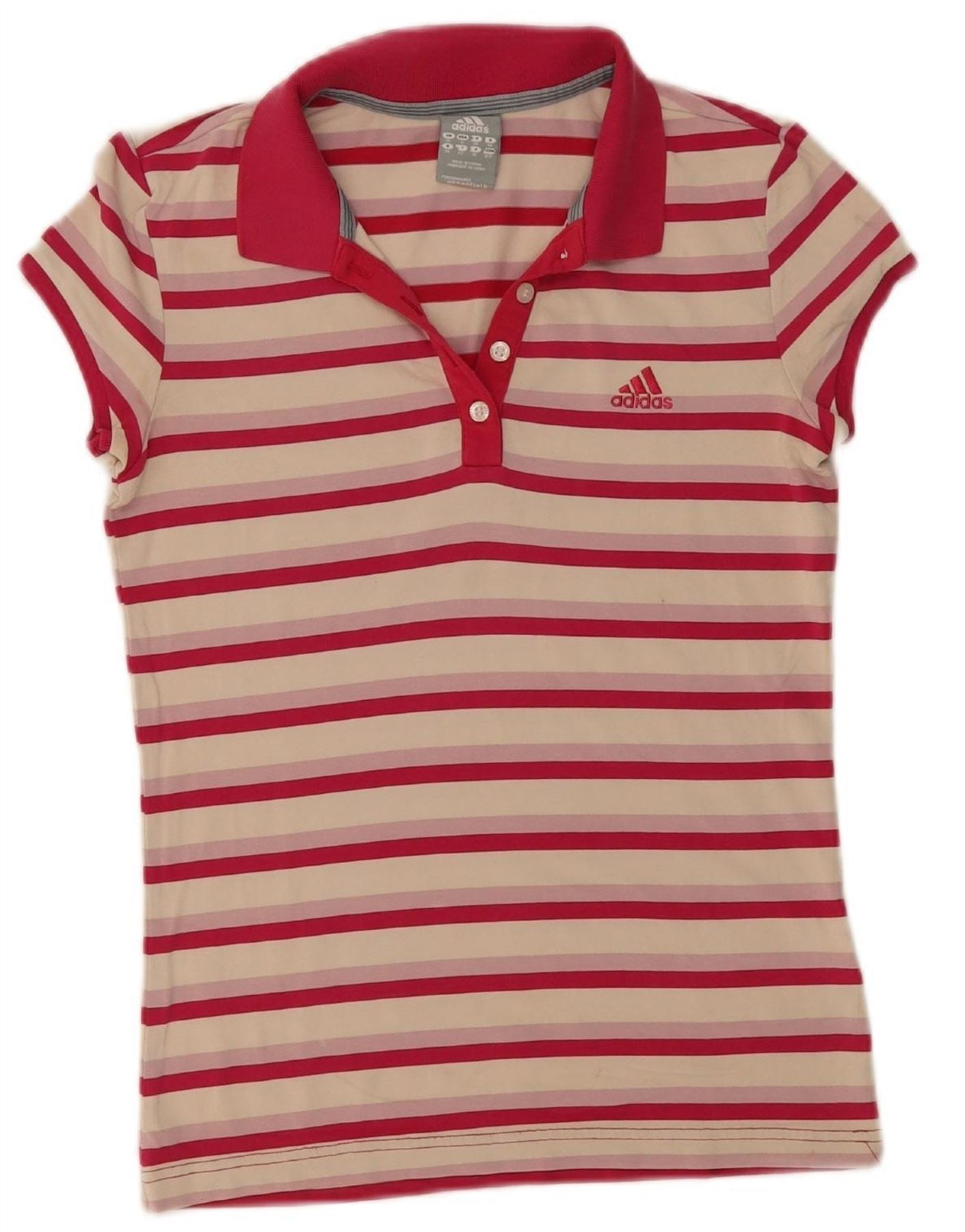 ADIDAS Womens Polo Shirt UK 10 Small Multicoloured Striped