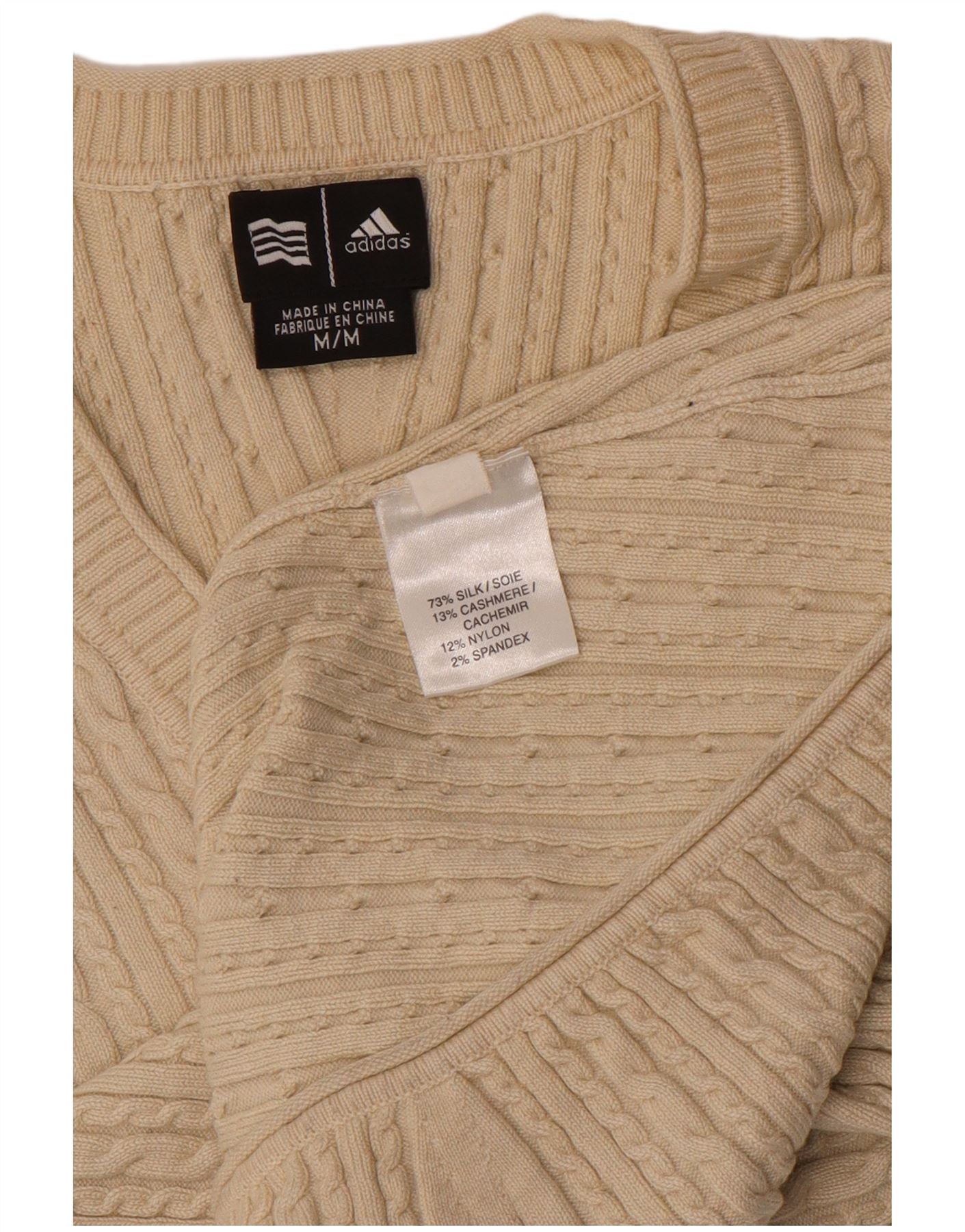 Pulover cu decolteu în V ADIDAS pentru femei UK 12 Mătase mediu bej