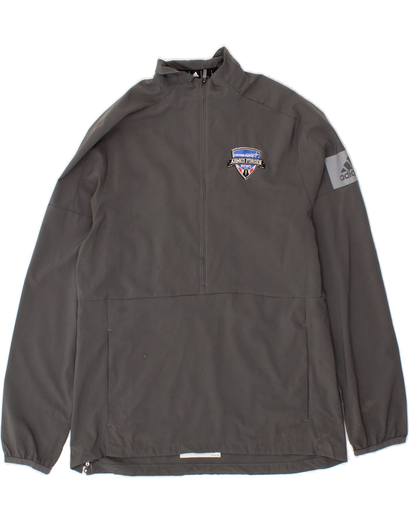 - Condition: Good Used Condition: the item has been worn but is well maintained and may show minor signs of wear - Stain on the front body stain on the sleeve.