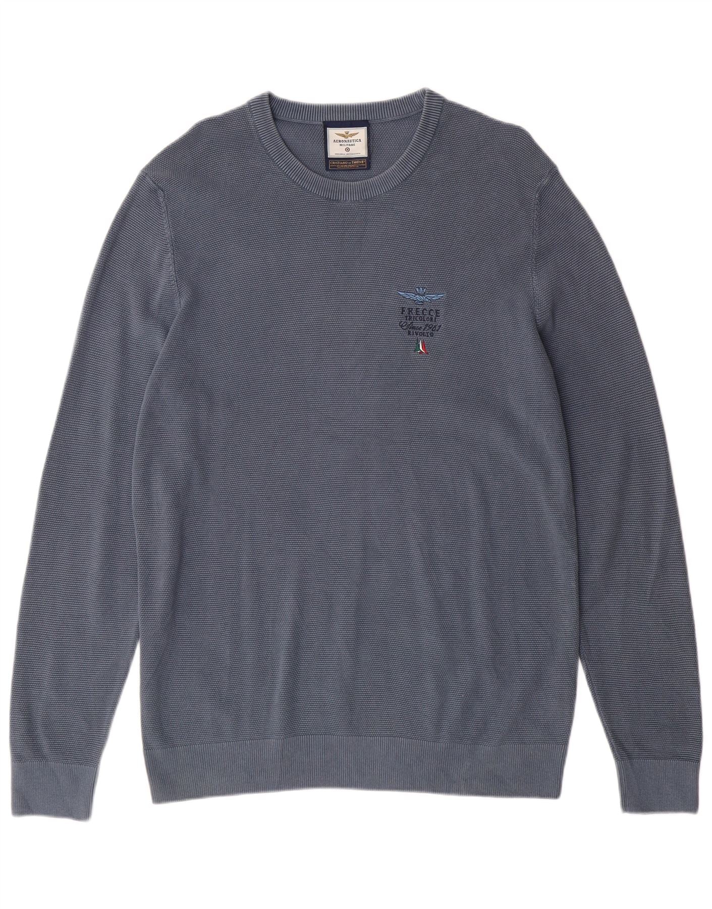 AERONAUTICA MILITARE Pulover pentru bărbați cu gât crew pulover XL bumbac albastru