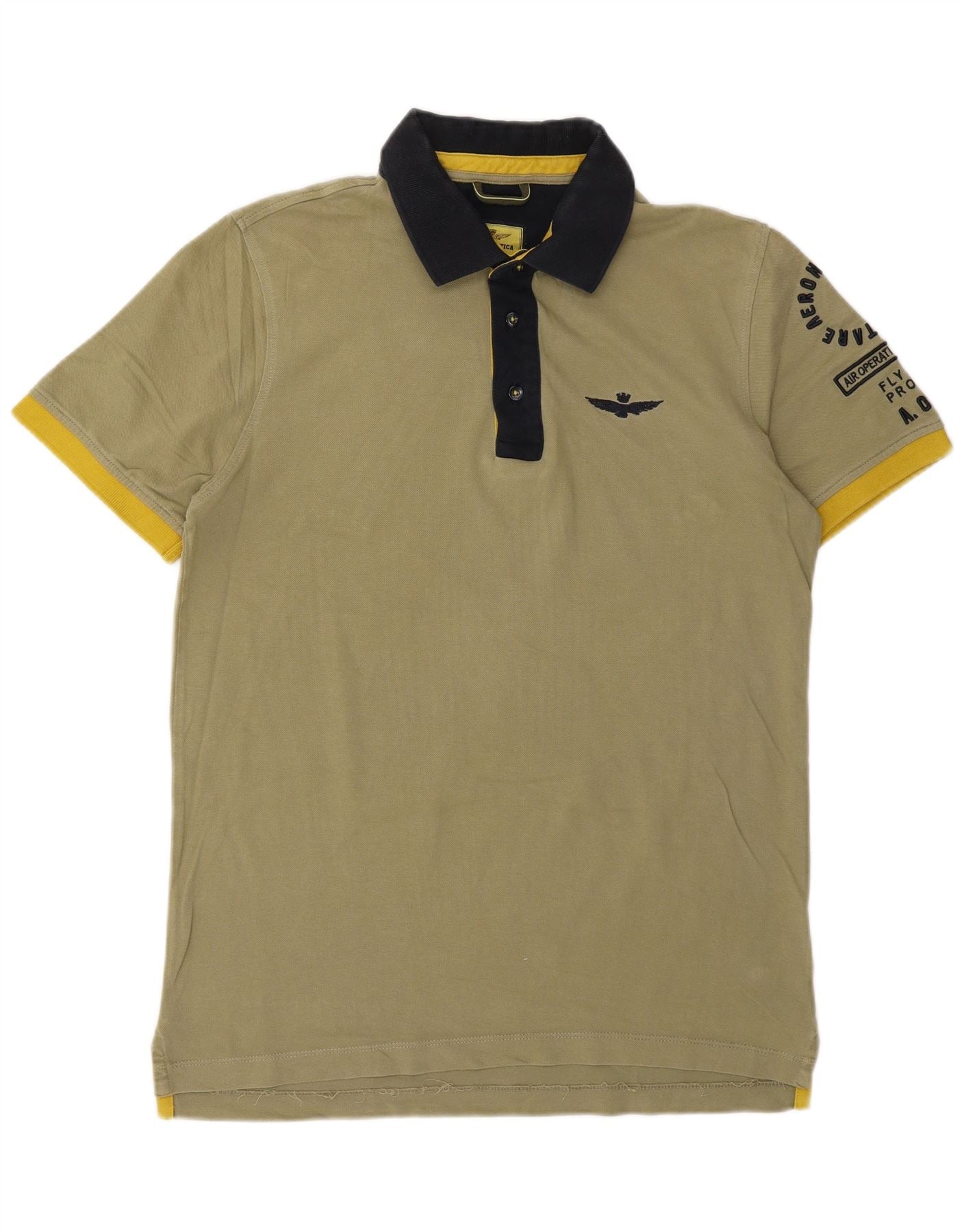 AERONAUTICA MILITARE Cămașă polo pentru bărbați cu grafică slim, bumbac kaki mediu