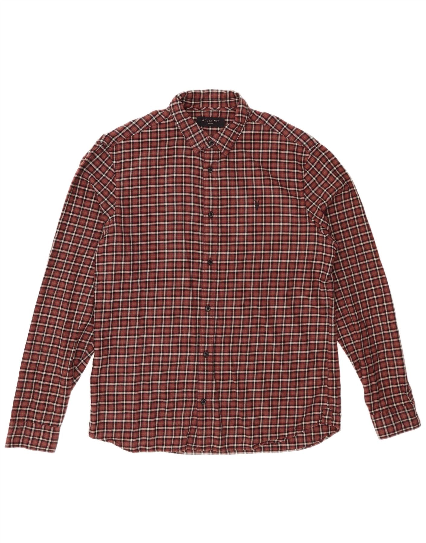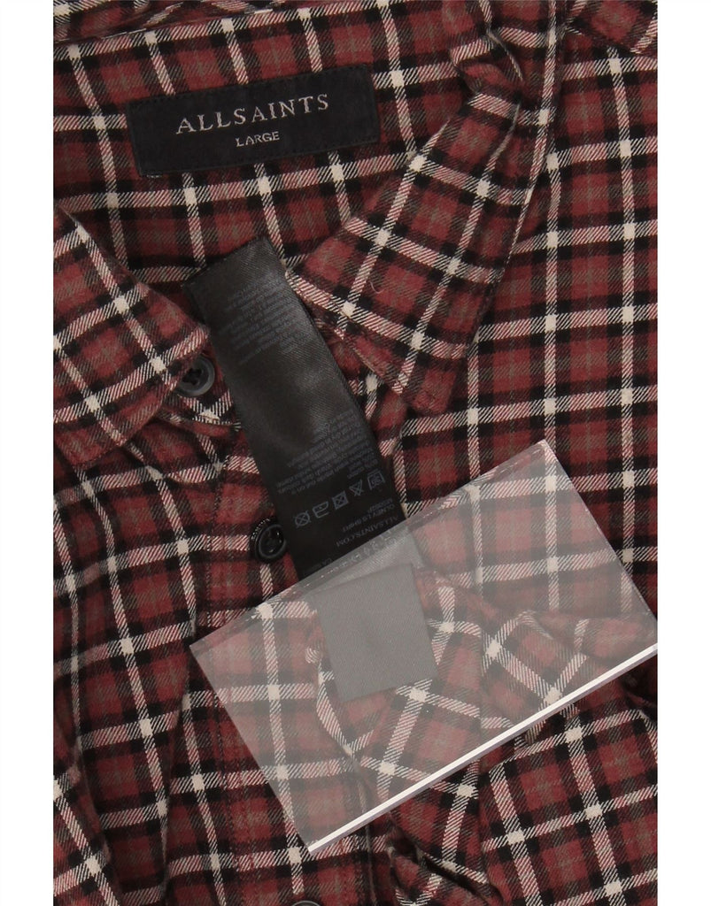 Cămașă de flanel pentru bărbați ALL SAINTS, bumbac cu carouri burgundă