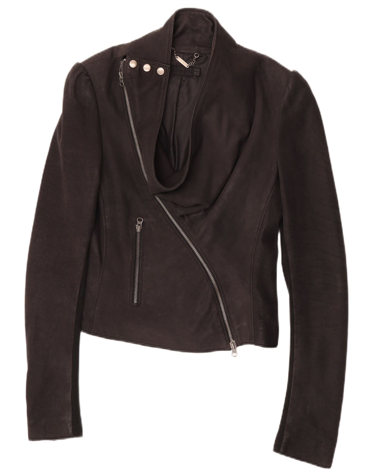- Descriere AI: Această jachetă de motociclist pentru femei All Saints este confecționată din piele neagră luxoasă, oferind un finisaj elegant și durabil. Are o închidere asimetrică cu fermoar și un decolteu cu guler pentru o estetică clasică de motociclist. Mânecile lungi și o potrivire obișnuită asigură confort și stil. Buzunarele cu fermoar adaugă detalii practice. Designul este atât evizor, cât și rafinat.