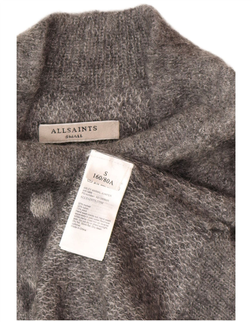ALL SAINTS Womens Turtle Neck Jumper Sweater UK 10 Small Grey Animal Print