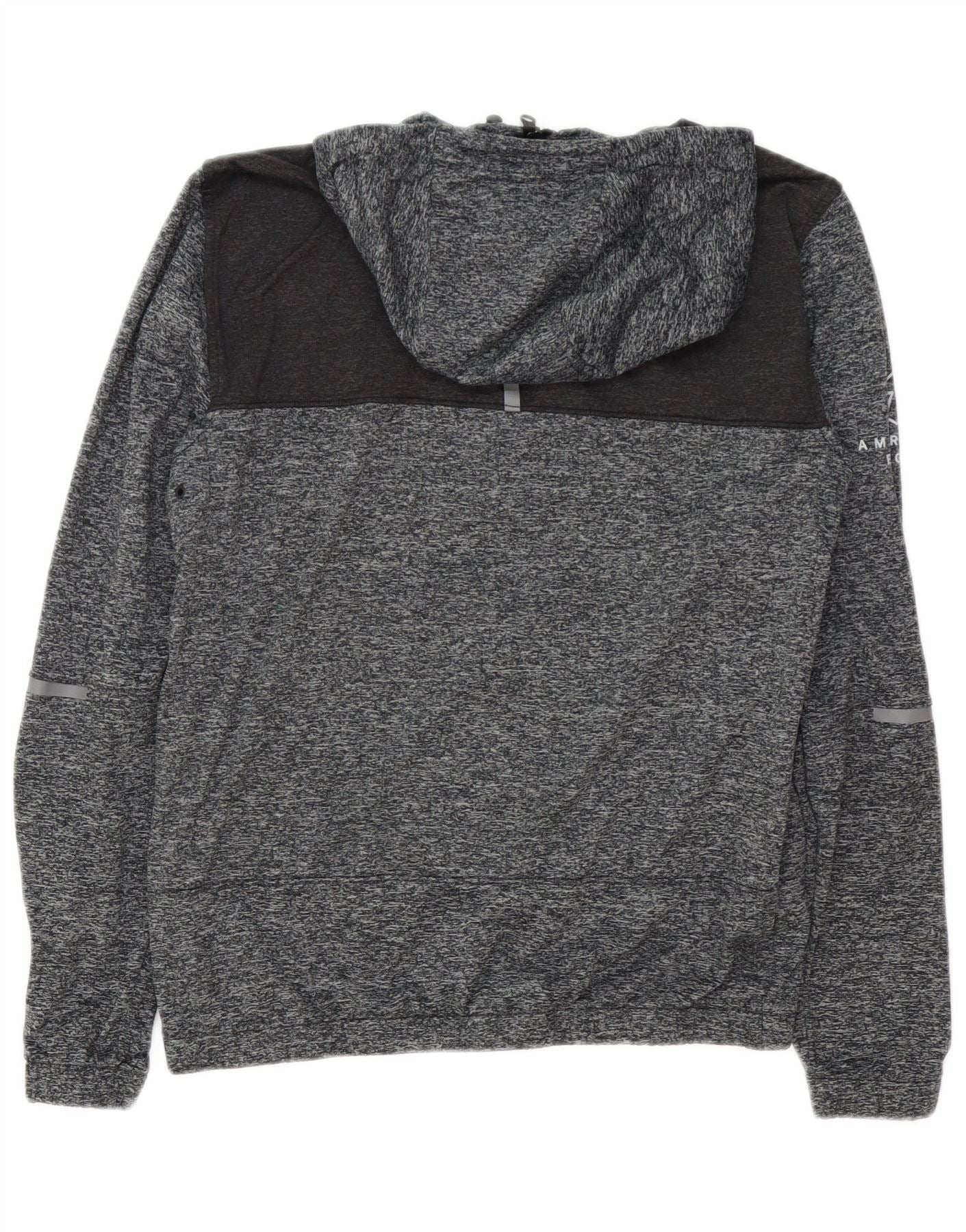 AMERICAN EAGLE Pulover cu capota cu fermoar grafic pentru bărbați, gri mic, cu pete