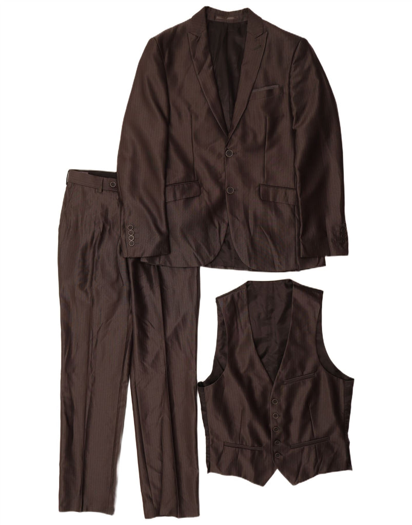 ANGELO LITRICO Mens 2 Button 3 Piece Suit EU 44 XS W26 L31 Grey Pinstripe