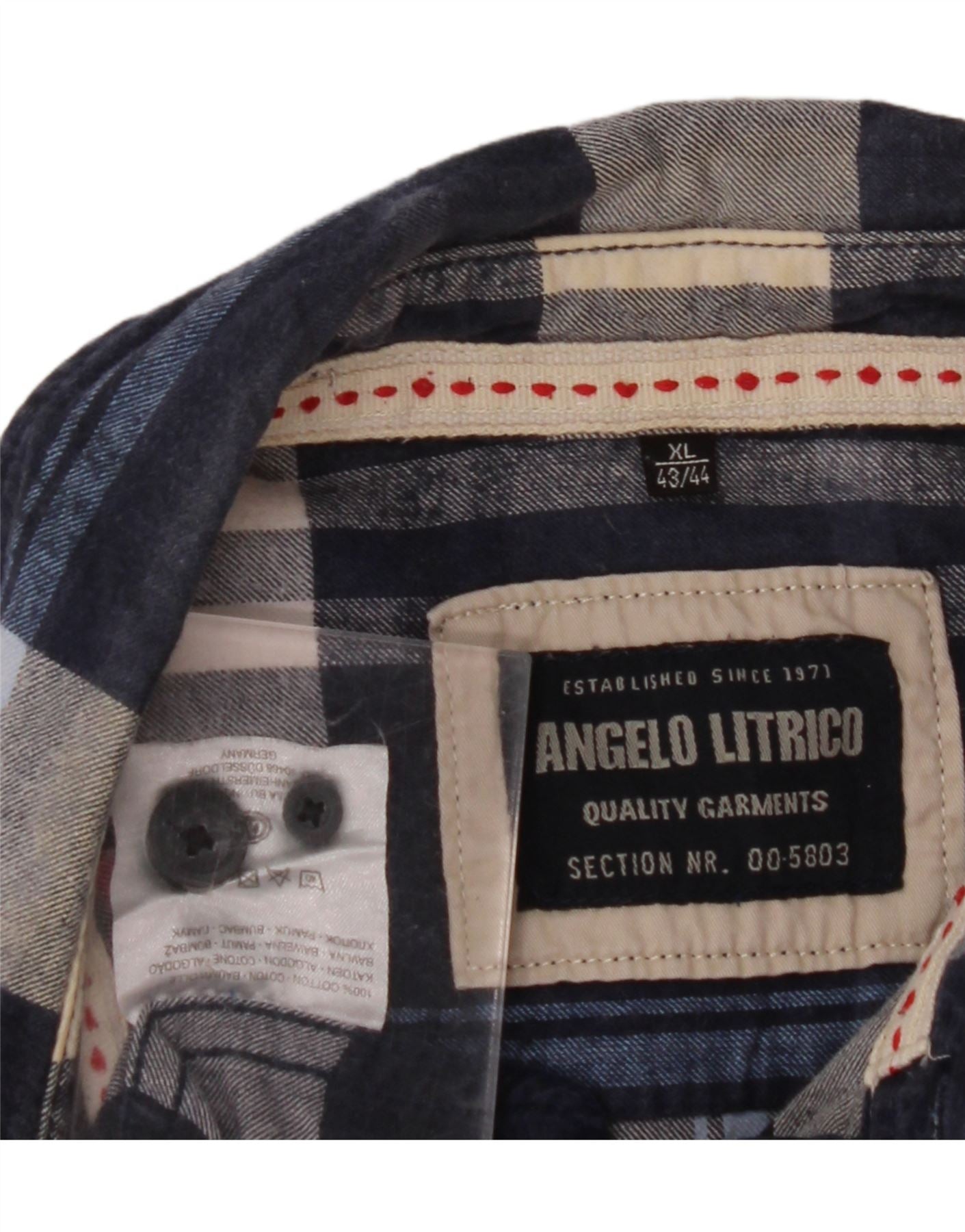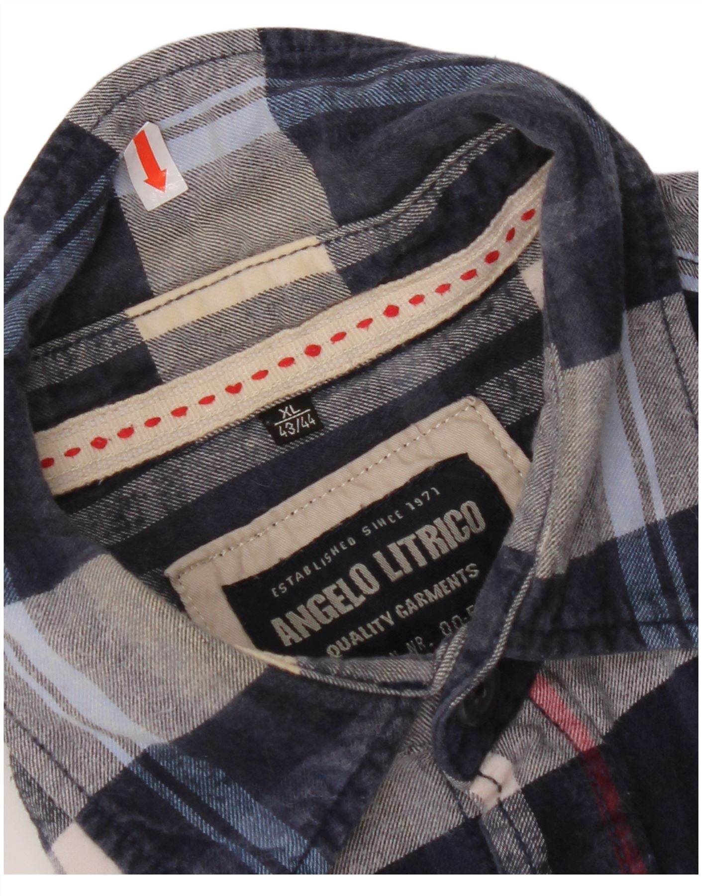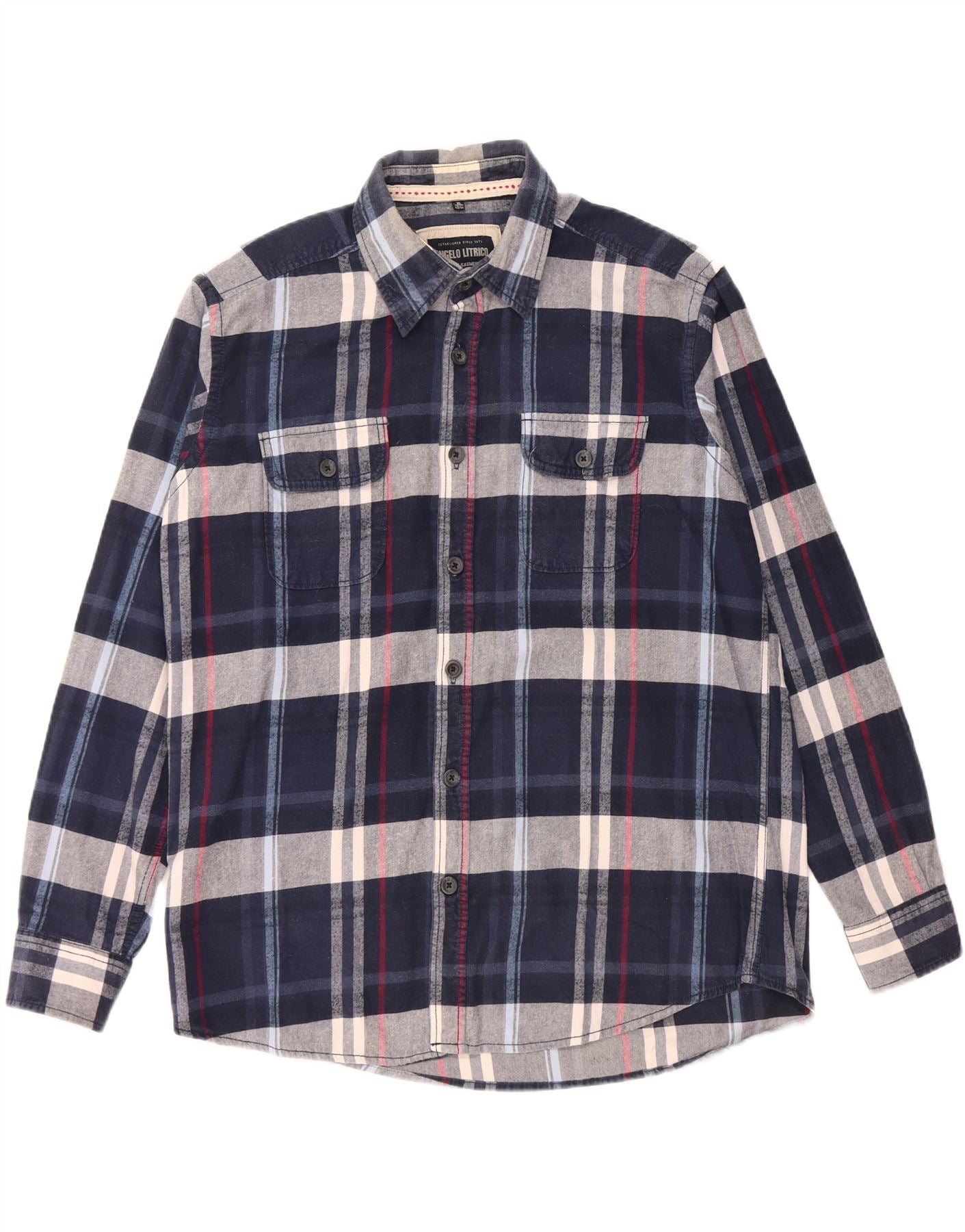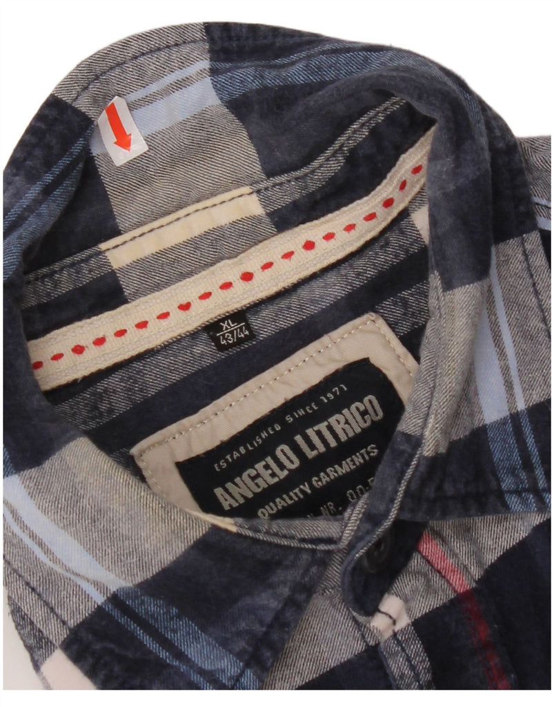 ANGELO LITRICO Mens Flannel Shirt Size 43/44 XL Navy Blue Check Cotton