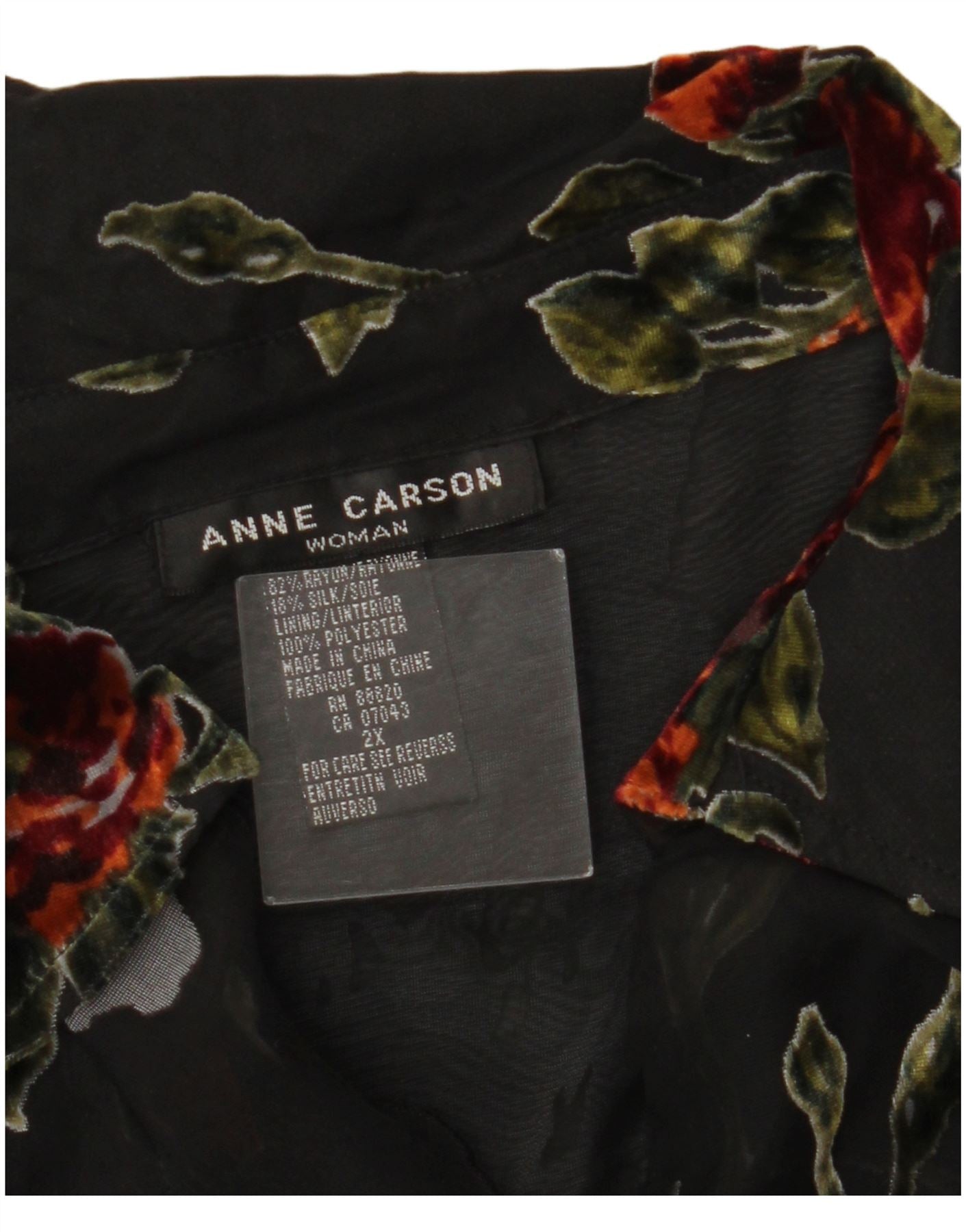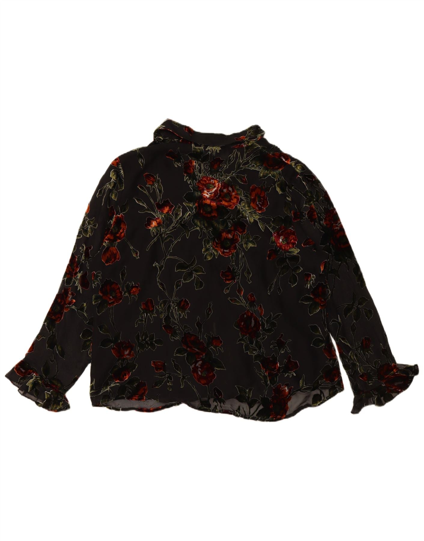 ANNE CARSON Womens Ruffle Front Shirt Blouse UK 20 2XL Black Floral Rayon