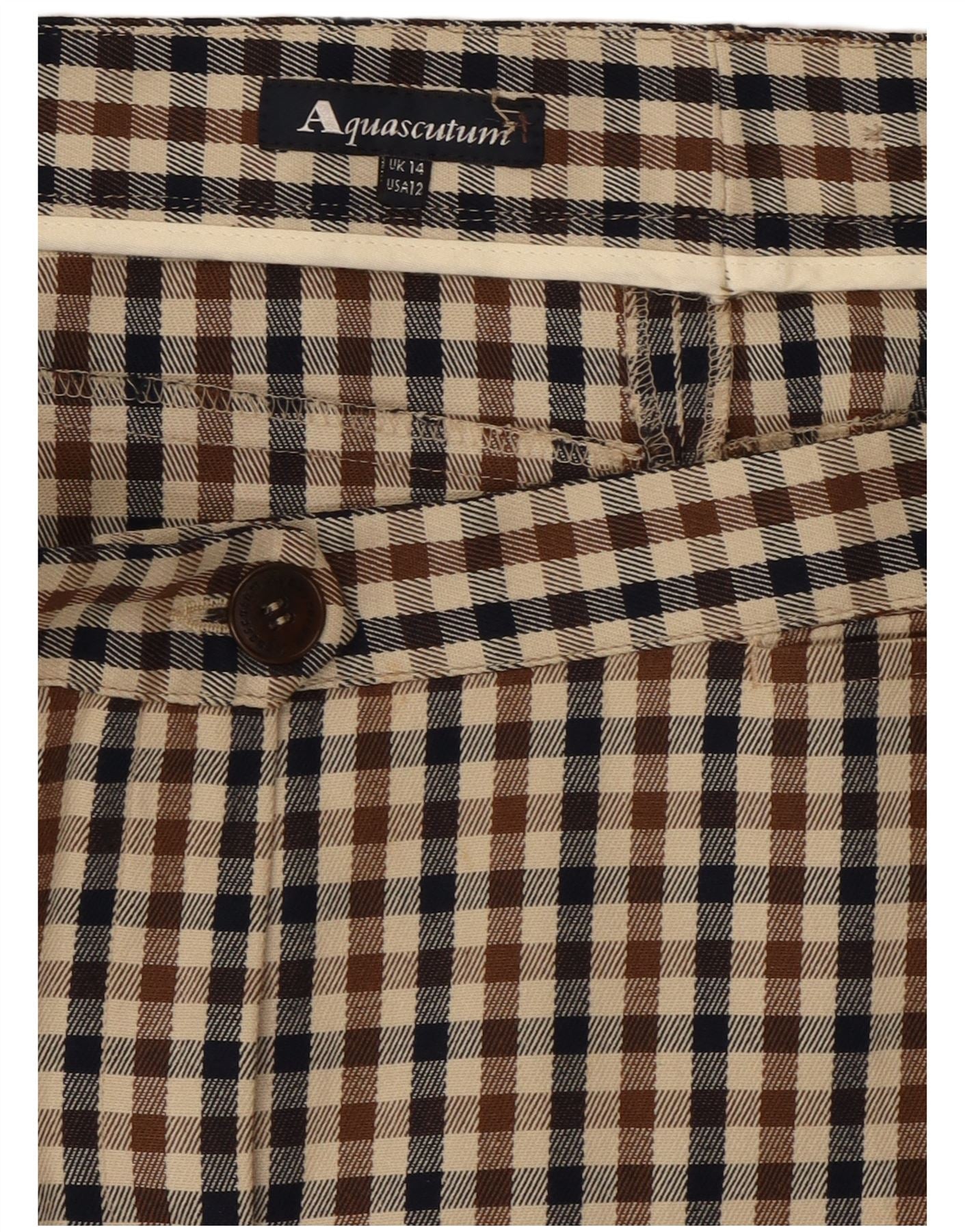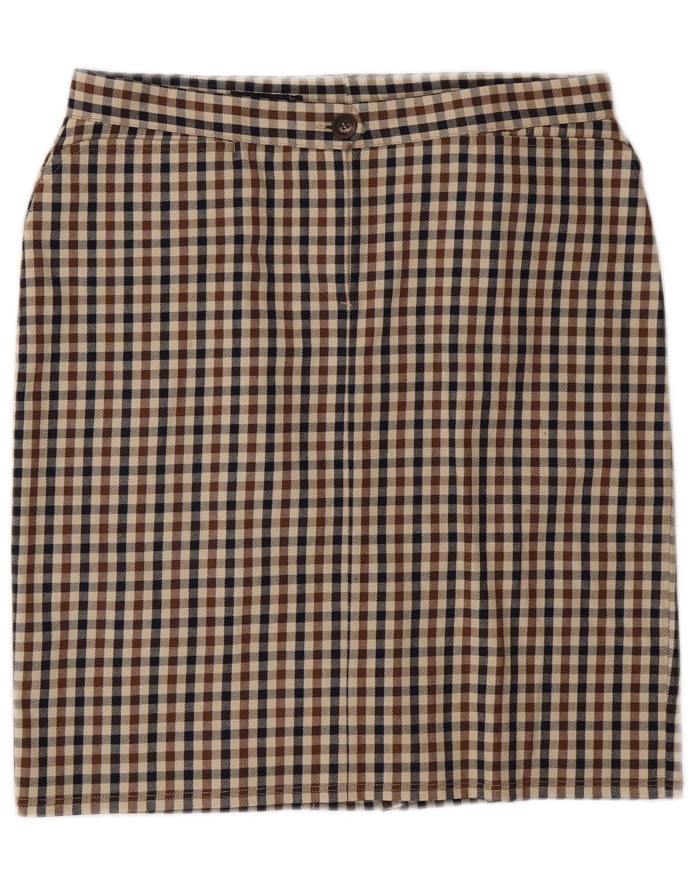 AQUASCUTUM Womens Straight Skirt UK 14 Medium W32 Beige Gingham